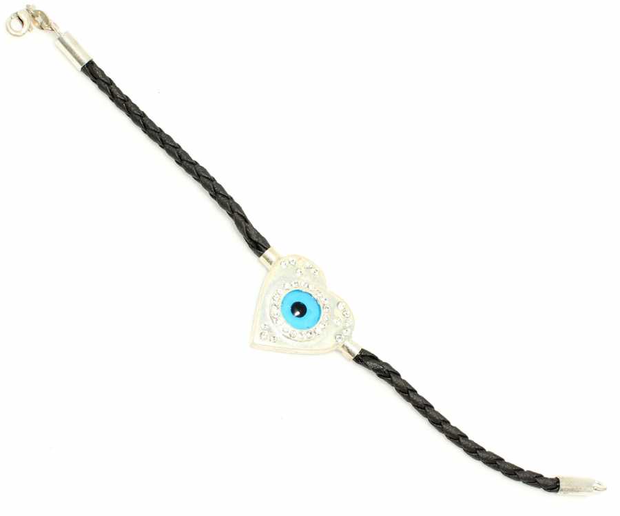 925 Ayar Gümüş 18 cm boyunda Kalpli Nazar Boncuklu Derili bileklik Gramı: 8,77 gr