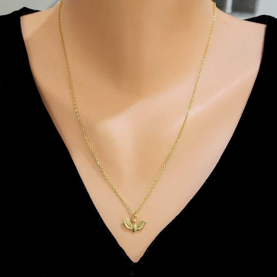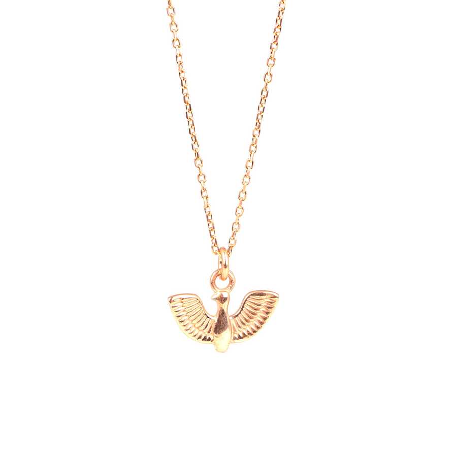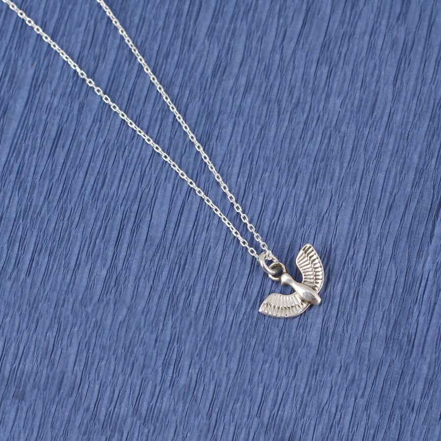 925 ayar gümüştür. Kanatları açık kuş kolye 14 x 11 mm ebadındadır. 40 + 5 cm uzatma ile birlikte 45 cm'dir. Gramı: 1,92 gr