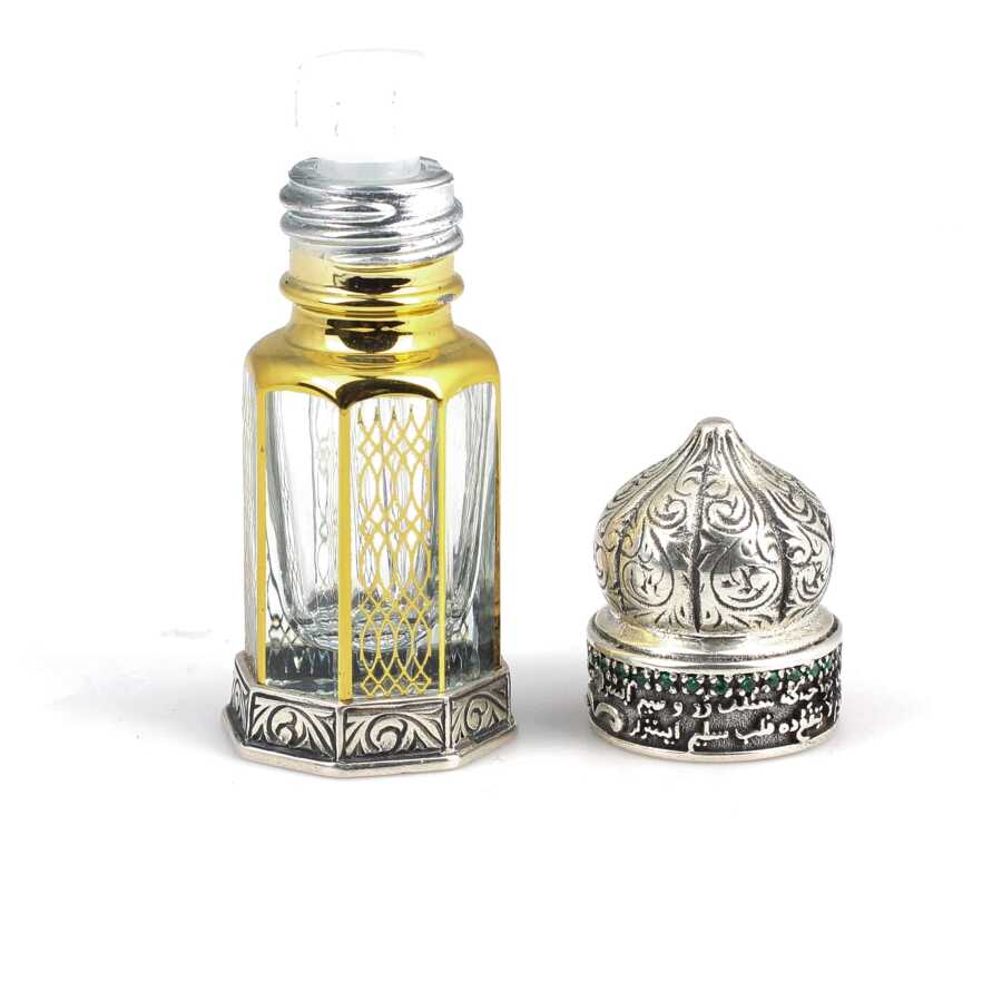 925 Ayar Gümüş Kapaklı Nostaljik Parfüm Şişesi 5,8 cm uzunluğundadır. Kapak kısmında ve altı kısmı el kalemlidir. Şişenin genişliği 1,8 cm boyutlarındadır. Ağırlığı 41,6 gramdır.