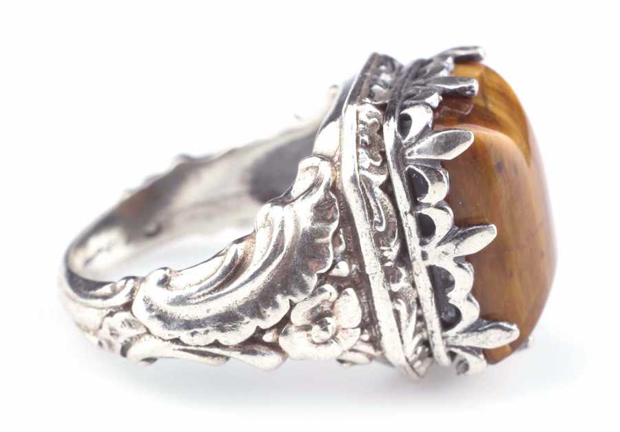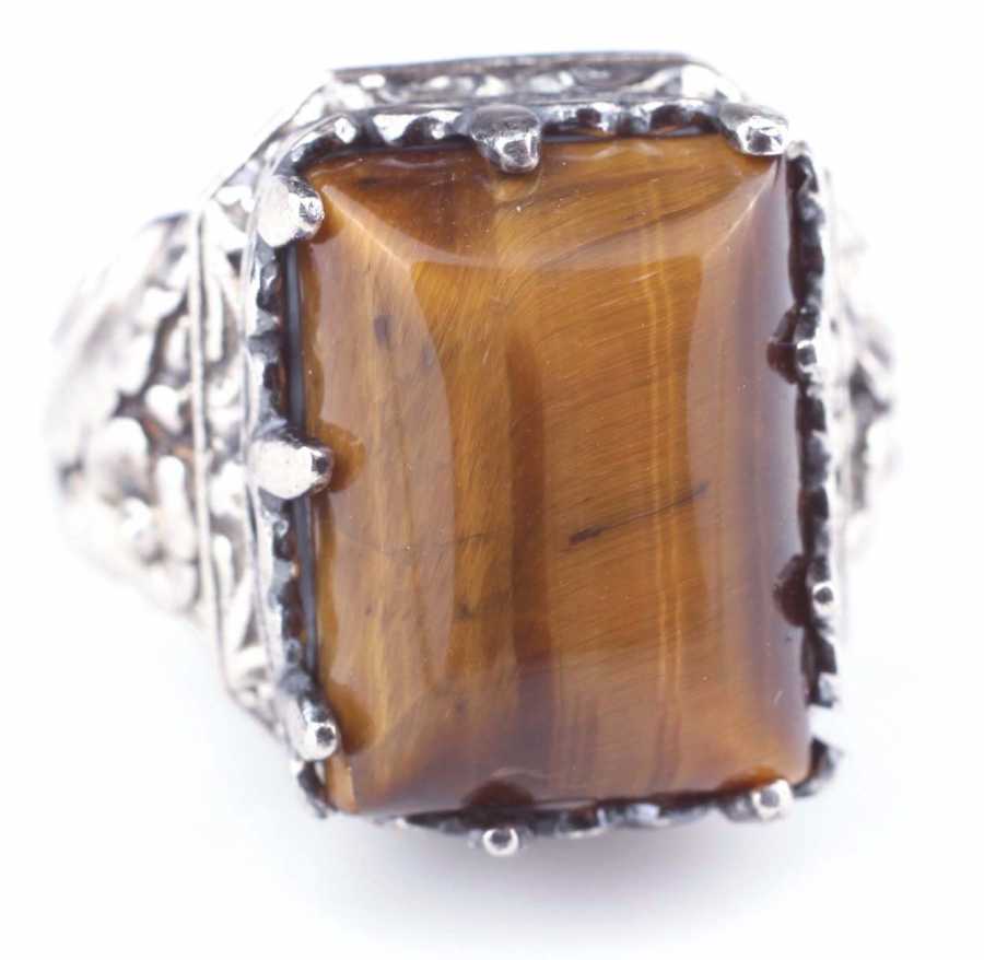 Yüzük 925 ayar gümüşten üretilmiştir. Taşlı yüzük 1,5 cm'ye 1,0 cm boyutlarındadır. Resimdeki yüzük 19 ölçüdür, ancak tüm ölçüler özel olarak yapılabilmektedir. Yüzük kaplan gözü taşlıdır. Ağırlığı 12,85 gramdır.