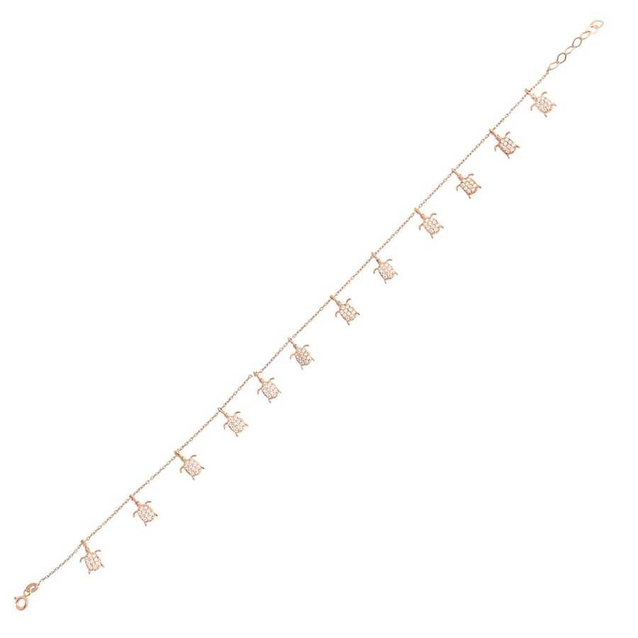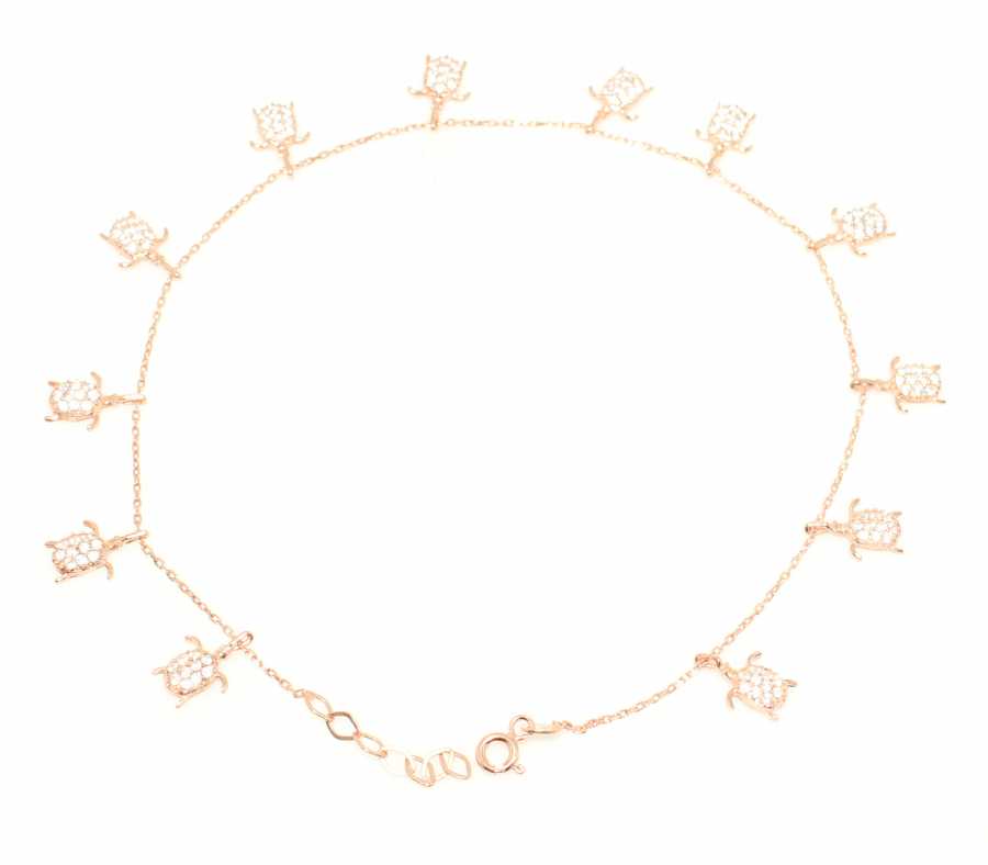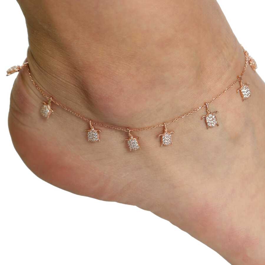 Bu mücevher parçası 925 ayar gümüşten imal edilmiştir. Halhal 25 cm uzunluğundadır ve 12 adet Kaplumbağa figüründen oluşmaktadır. Uzatma zinciri ile 27 cm'ye kadar uzatılabilir. Halhal zirkon taşlıdır. Halhalın ağırlığı 4,43 gramdır.