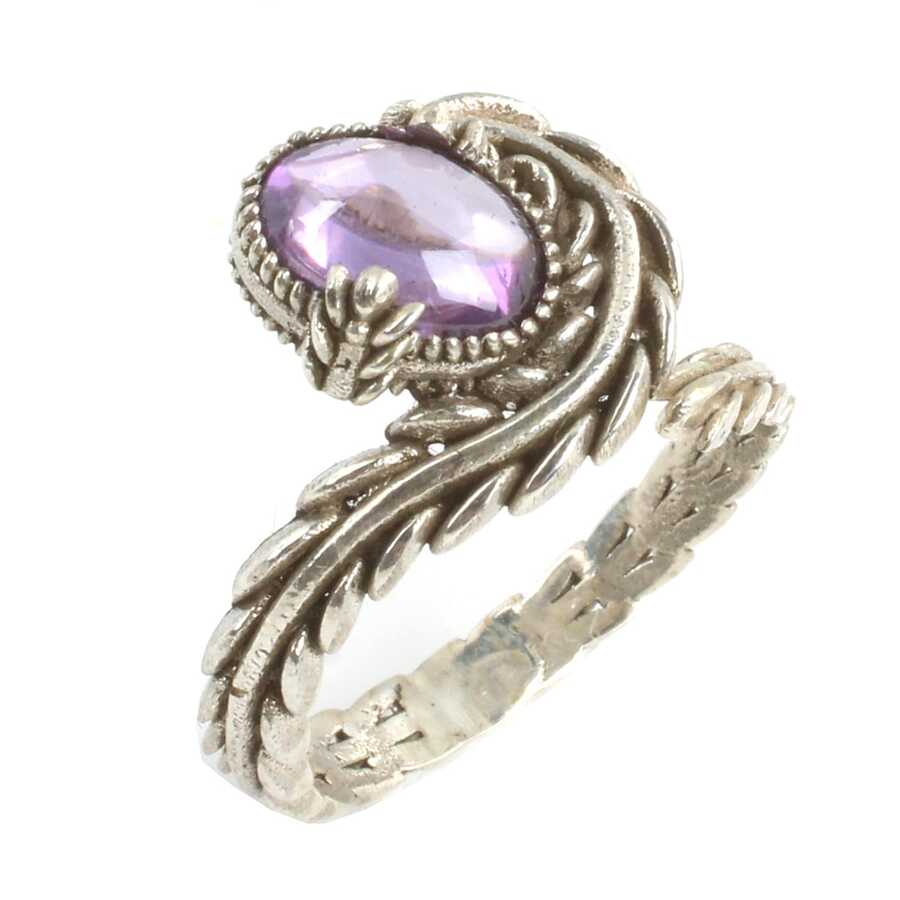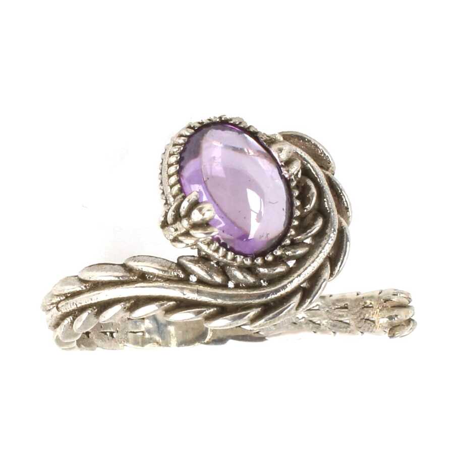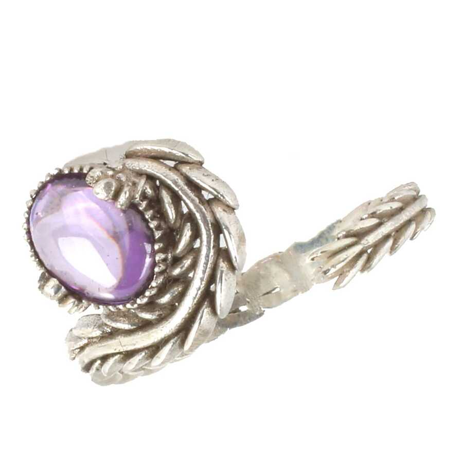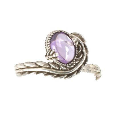 925 Ayar Gümüş Kapüşon Oval Ametist Taşlı Sarmaşık Yüzük