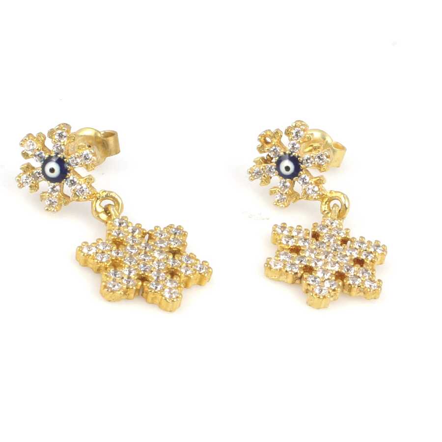 925 ayar gümüştür. Çivi küpedir. 2 parça kar tanesinden oluşan bir küpedir. Üst kar tanesi boyutu:0,8 cm büyük kar tanesi boyutu: 1,2 cm Gramı: 2,71 gr