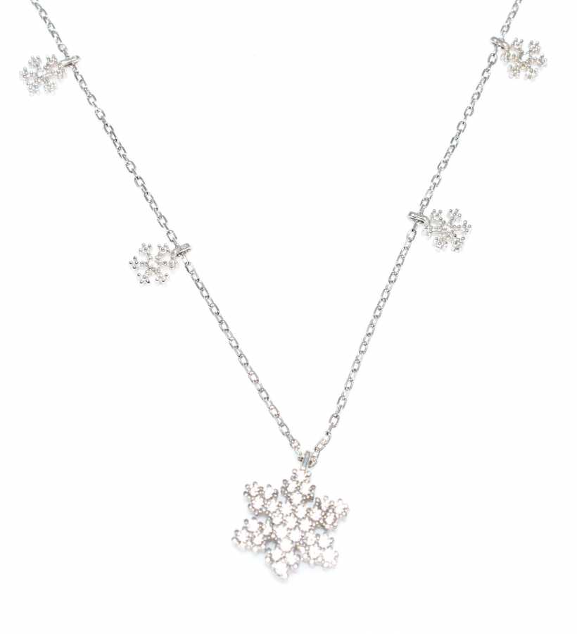 Gümüş kolye 925 ayar gümüşten yapılmıştır. Kar tanesinden oluşan ince gerdanlık kolye 45 cm uzunluğundadır. Kolye ucundaki kar taneleri 1,2 cm boyutlarındadır. Kolye zirkon taşlıdır. Ağırlığı 2,7 gramdır.