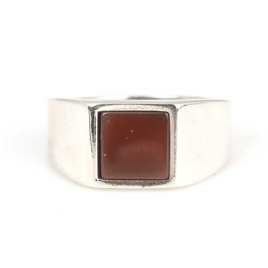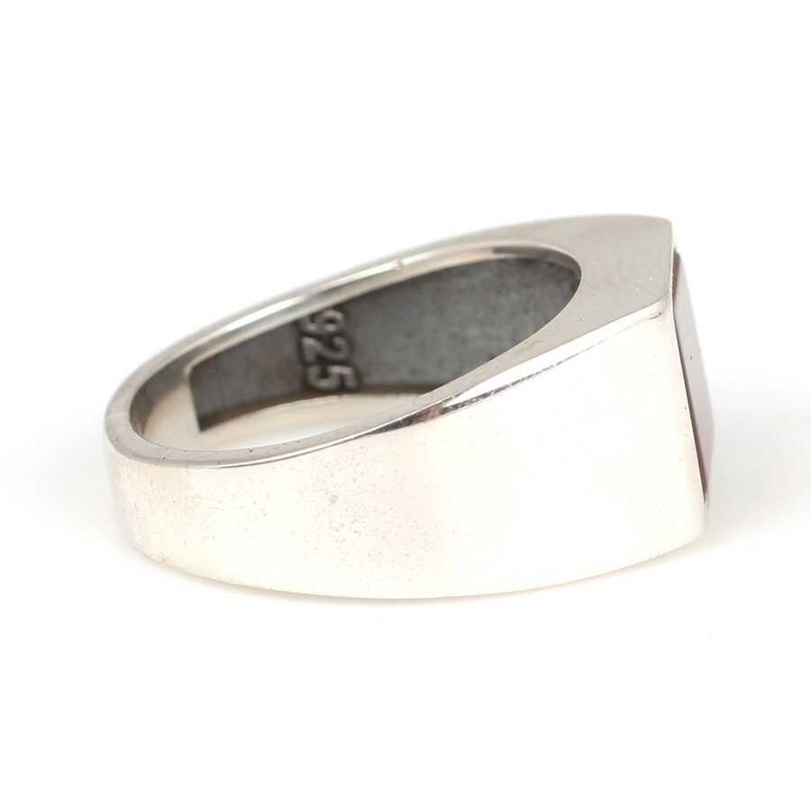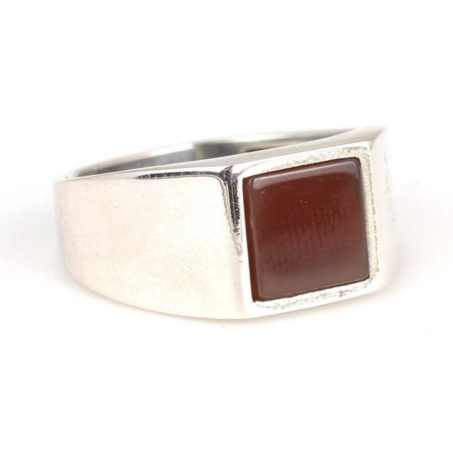 925 Ayar Gümüş Kare Akik Taşlı Cilalı Erkek Yüzüğü