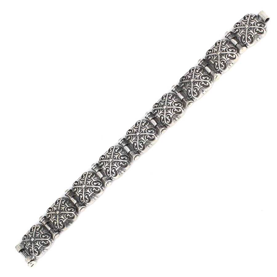 Bileklik 925 ayar gümüşten imal edilmiştir. Taşsız desenli bileklik 1,7 cm eninde ve 19,5 cm uzunluğundadır. Gümüş desenli bileklik taşsızdır. Gümüş bileklik 45,56 gramdır.