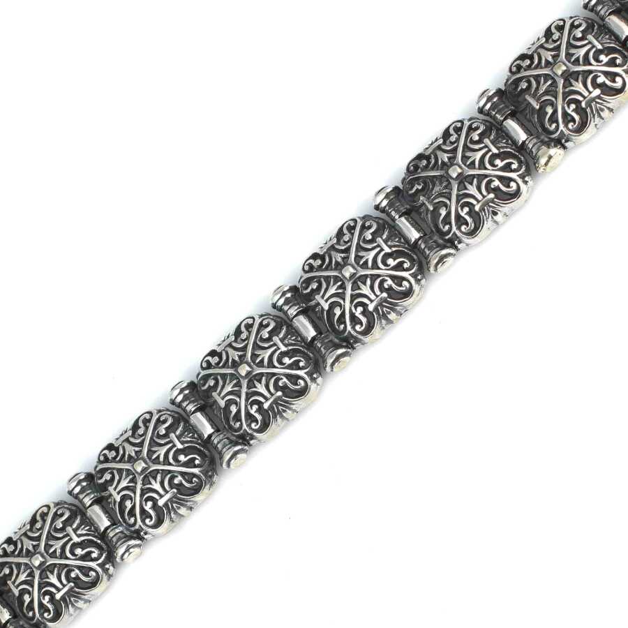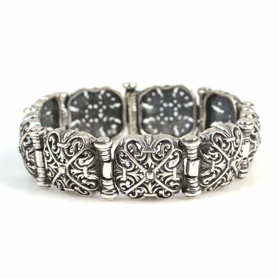 925 Ayar Gümüş Kare Bombeli Ajur Desenli Bileklik