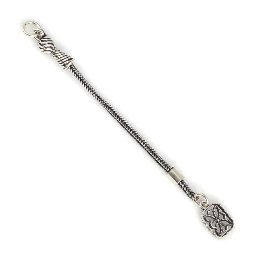 925 ayar gümüş olarak üretilmiştir. Gümüş püskül 8 cm uzunluğundadır. Püskül ucunda çiçek figürü vardır. Ağırlığı 2,17 gramdır.