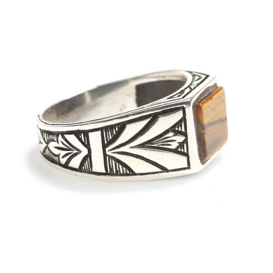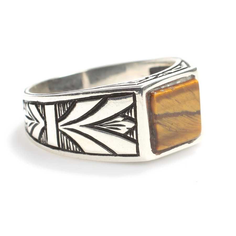 Yüzük 925 ayar gümüşten üretilmiştir. Taşlı yüzük 1,1 cm boyutlarındadır. Resimdeki yüzük 21 ölçüdür, ancak tüm ölçüler özel olarak yapılabilmektedir. Yüzük kaplan gözü taşlıdır. Ağırlığı 6,58 gramdır.
