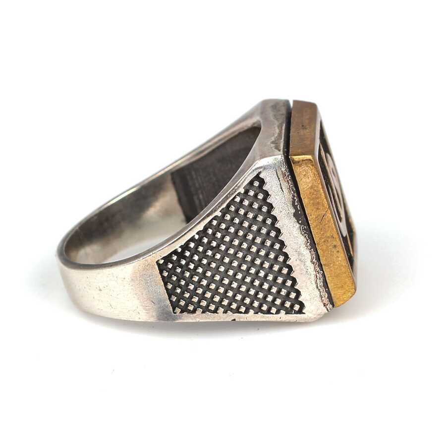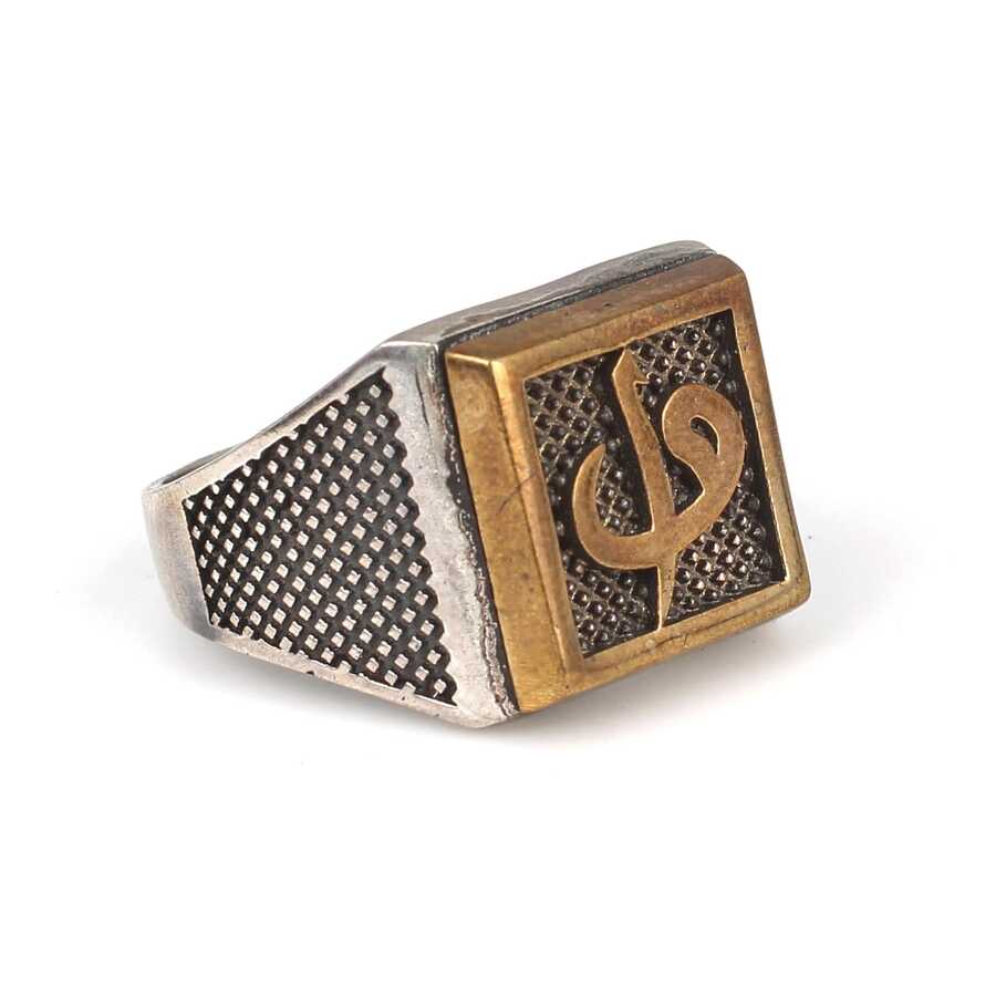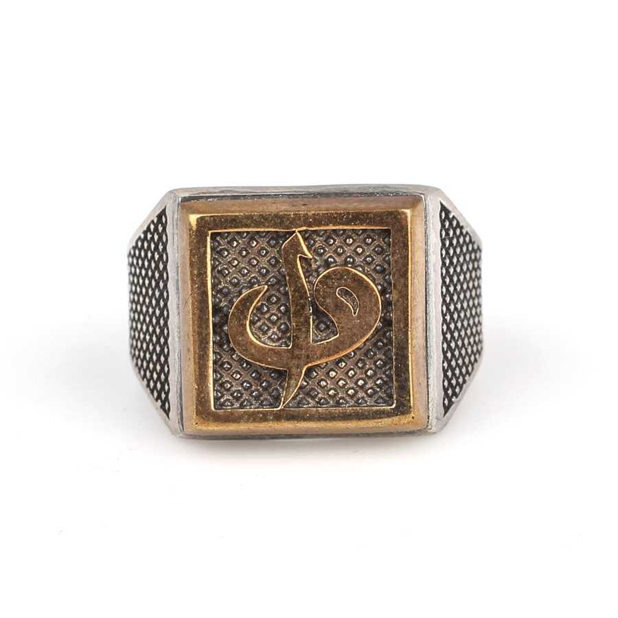 925 Ayar Gümüş Kare Kaşlı Elif Vav Erkek Yüzük