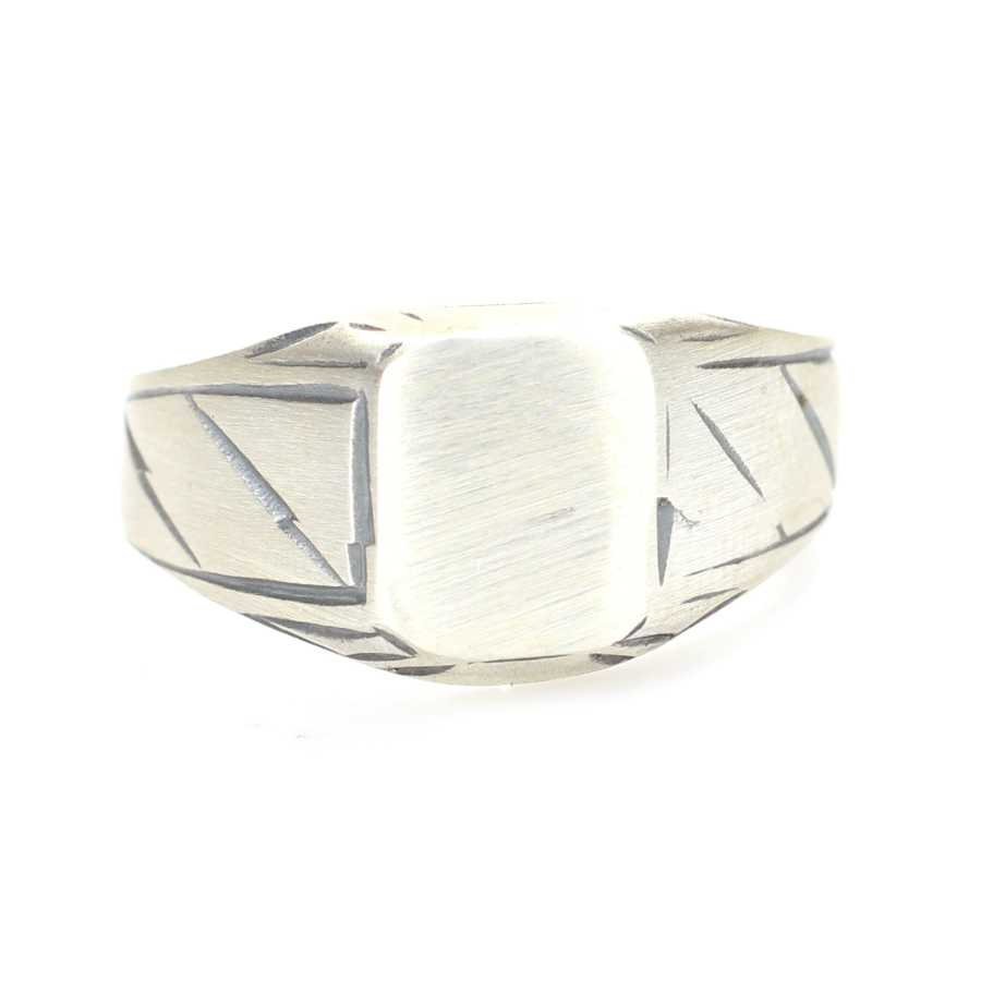 925 Ayar Gümüş Kare Kaşlı Kolları Desenli Erkek Yüzük