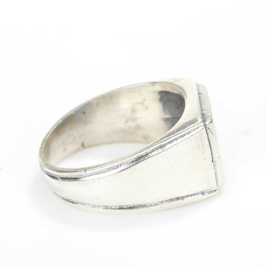 Yüzük 925 ayar gümüşten üretilmiştir. Düz kare şövalye model yüzüğün üst kısmı 1,2 cm boyutlarındadır. Resimdeki yüzük 18 ölçüdür, ancak tüm ölçüler yapılabilmektedir. Yüzük taşsızdır. Ağırlığı 7,27 gramdır.