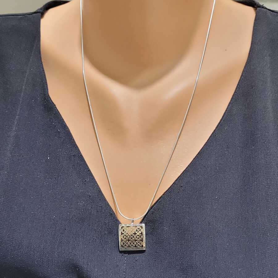 925 Ayar Gümüş Kare Konstantin Kolye