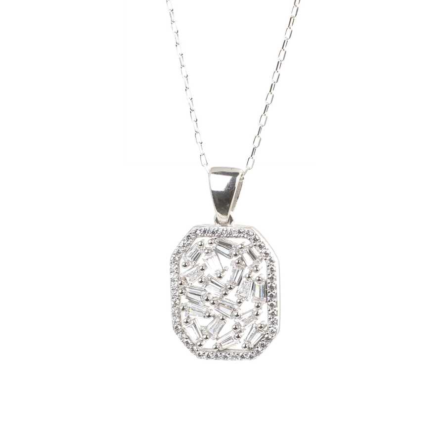 925 Ayar Gümüş Kare Model Baget Taşlı Kolye