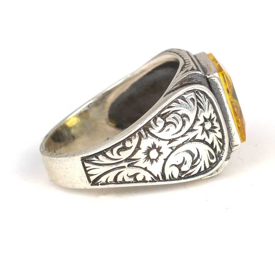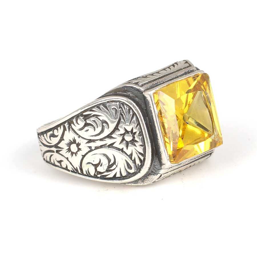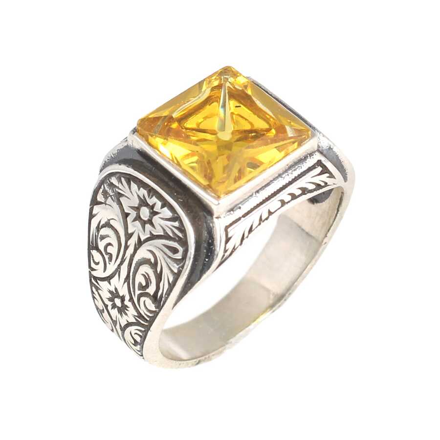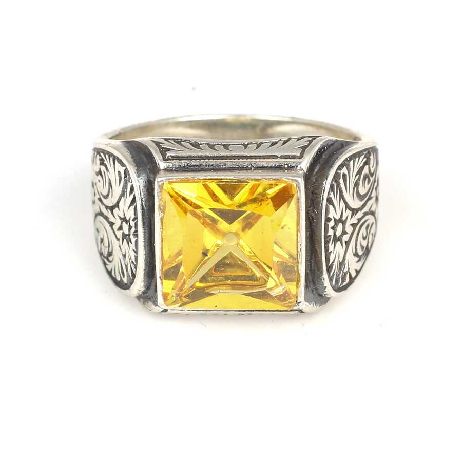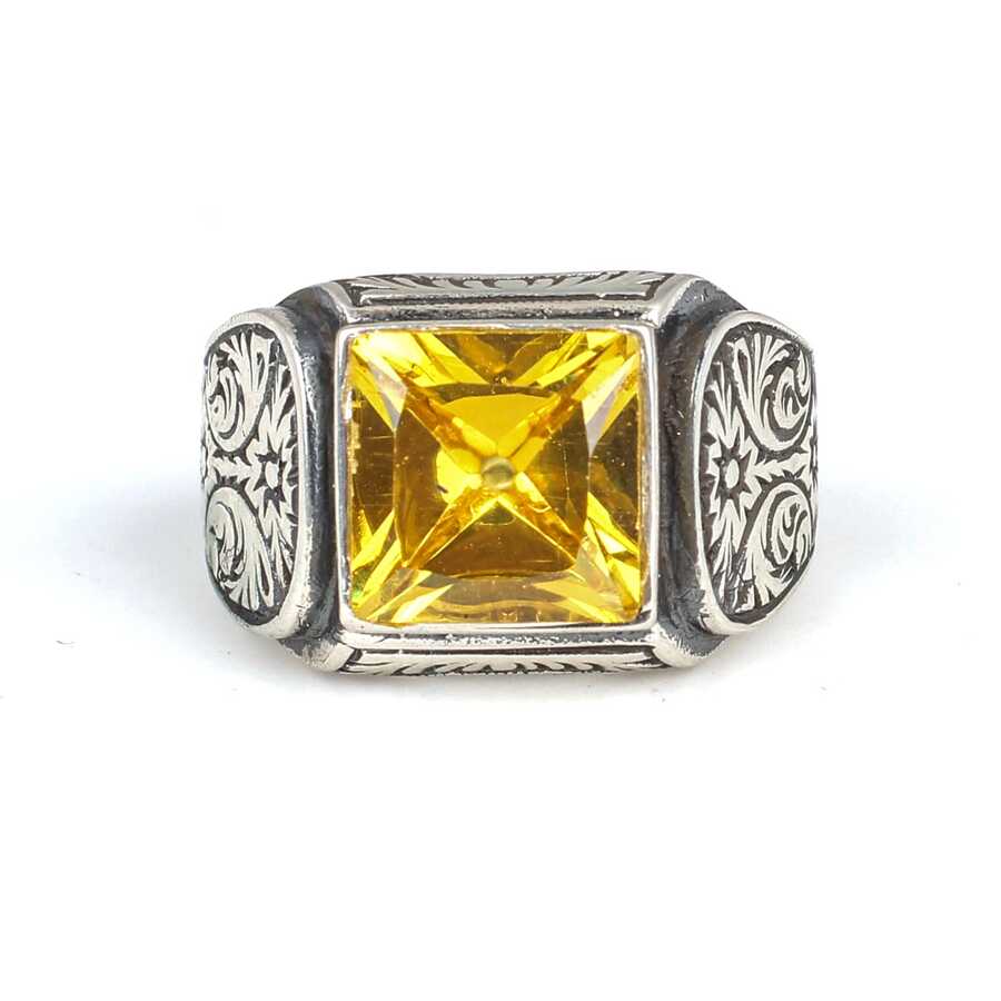 925 Ayar Gümüş Kare Sitrin Taşlı Erkek Yüzüğü