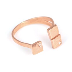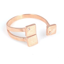 Yüzük 925 ayar gümüşten üretilmiştir. Zarif tasarım şeklinde yüzük 0,5 cm boyutlarında üçlü kare parçalardan oluşmaktadır. Resimdeki yüzük - ölçüdür, ancak tüm ölçüler yapılabilmektedir. Yüzük zirkon taşlıdır. Ağırlığı 1,87 gramdır.