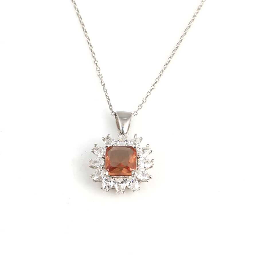 Gümüş kolye 925 ayar gümüşten yapılmıştır. Kare anturaj model kolye 2,5 cm'ye 1,7 cm boyutlarındadır. Zultanit taşı 0,8 cm'ye 0,8 cm boyutlarındadır. Gümüş kolye 45 cm uzunluğundadır. Zultanit taşı damla zirkon taşlar ile çevrilidir. Kolye beyaz zirkon ve zultanit taşlıdır. Ağırlığı 4,85 gramdır.