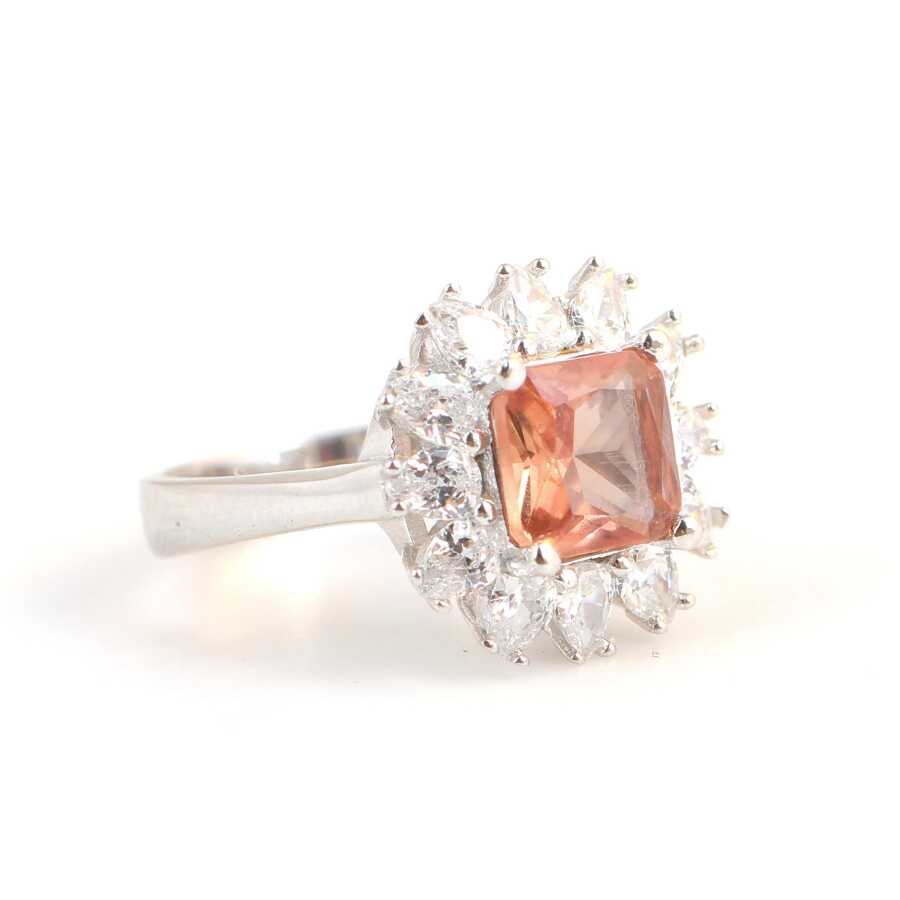 Yüzük 925 ayar gümüşten üretilmiştir. Kare taşlı anturaj model yüzüğün taşı 0,8 cm'ye 0,8 cm boyutlarındadır. Resimdeki yüzük 17 ölçüdür, ancak tüm ölçüler yapılabilmektedir. Yüzük zirkon ve zultanit taşlıdır. Ağırlığı 5,94 gramdır.
