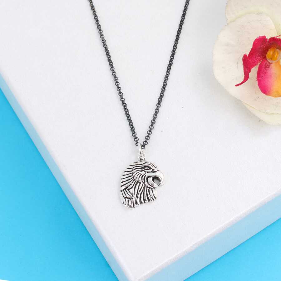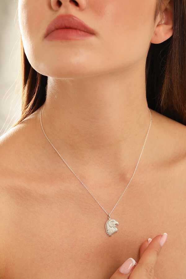 WGKL682 - 925 Ayar Gümüş Kartal Başı Modeli Erkek Kolyesi