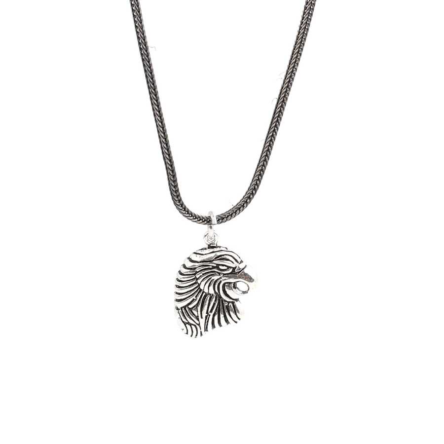 925 Ayar Gümüş Kartal Başı Modeli Tilki Kuyruğu Zincirli Erkek Kolyesi