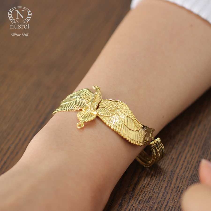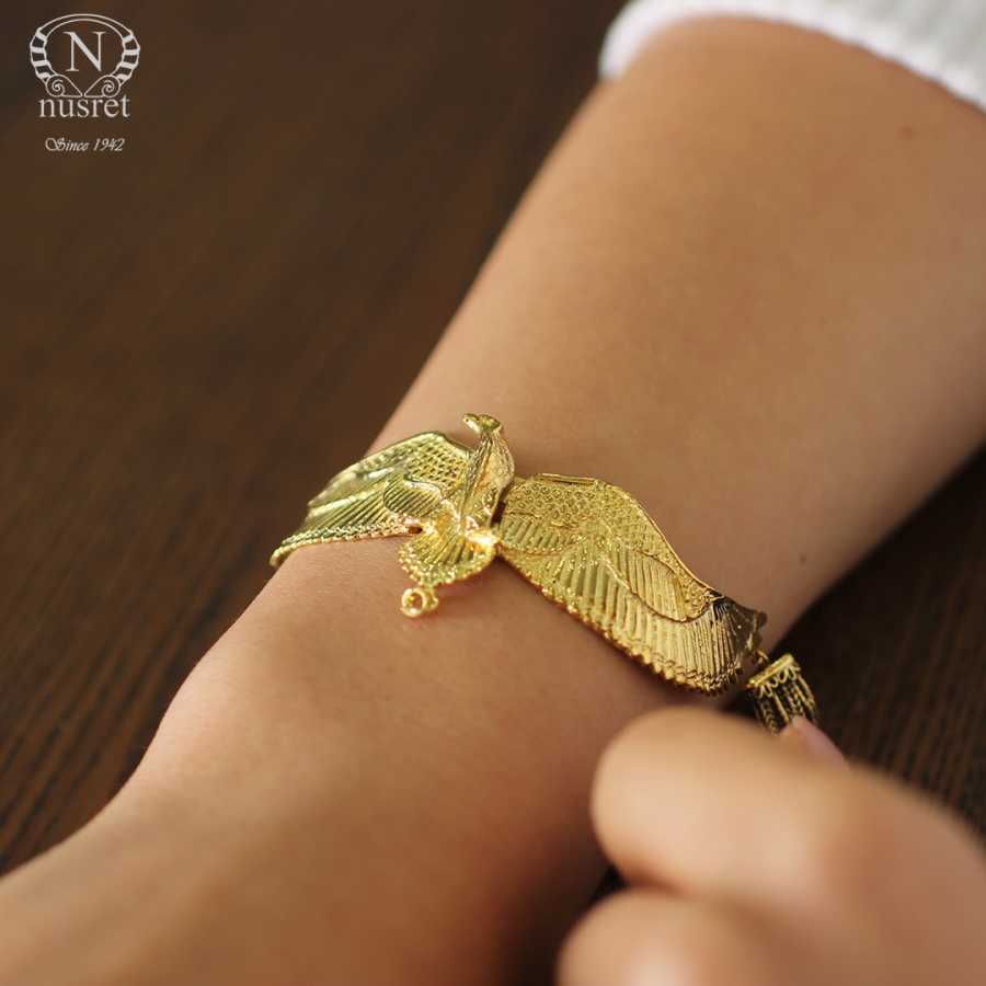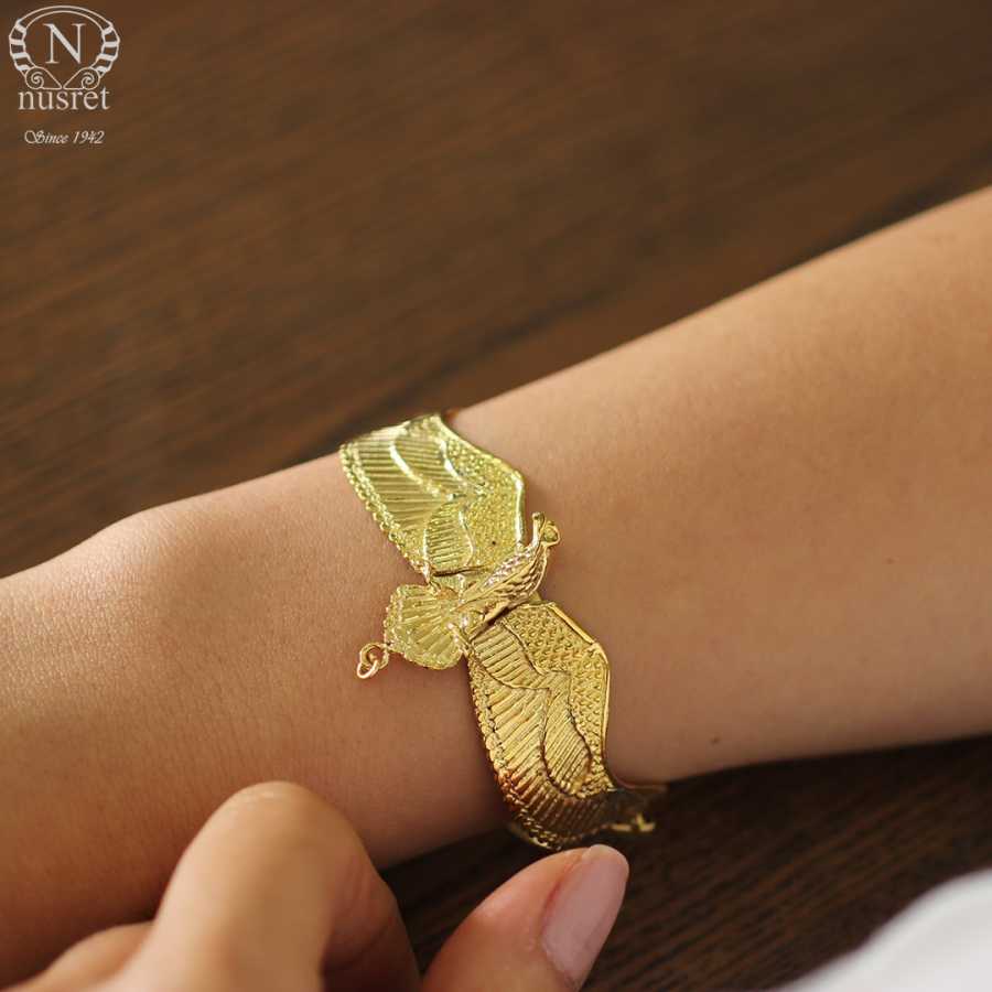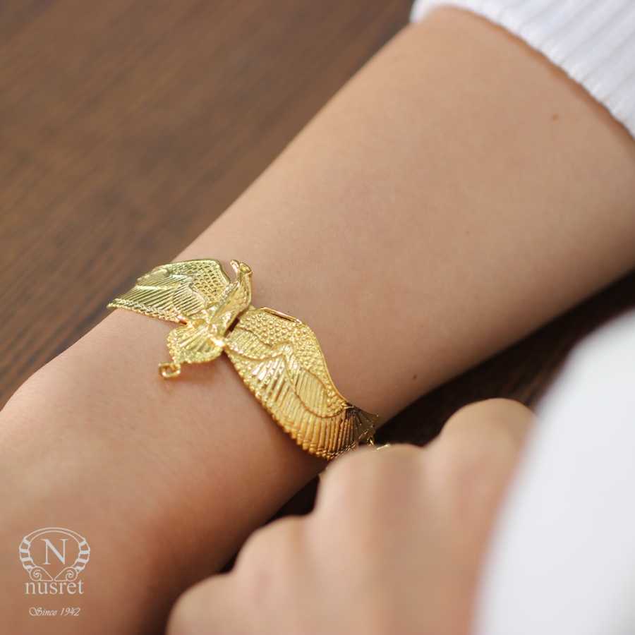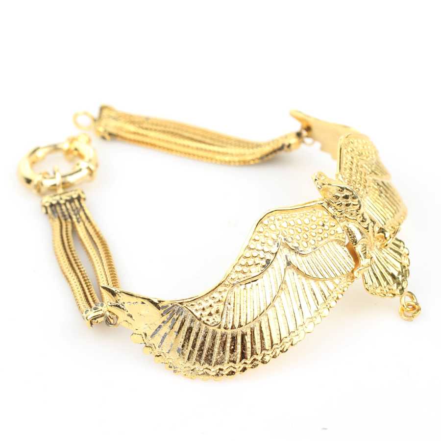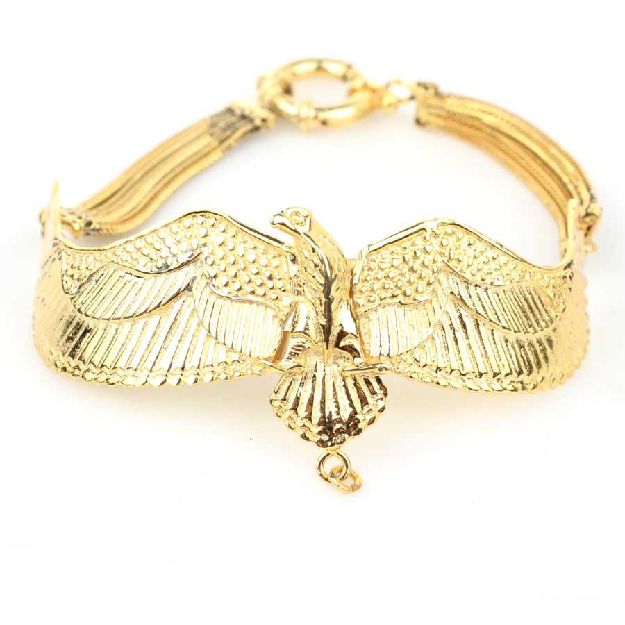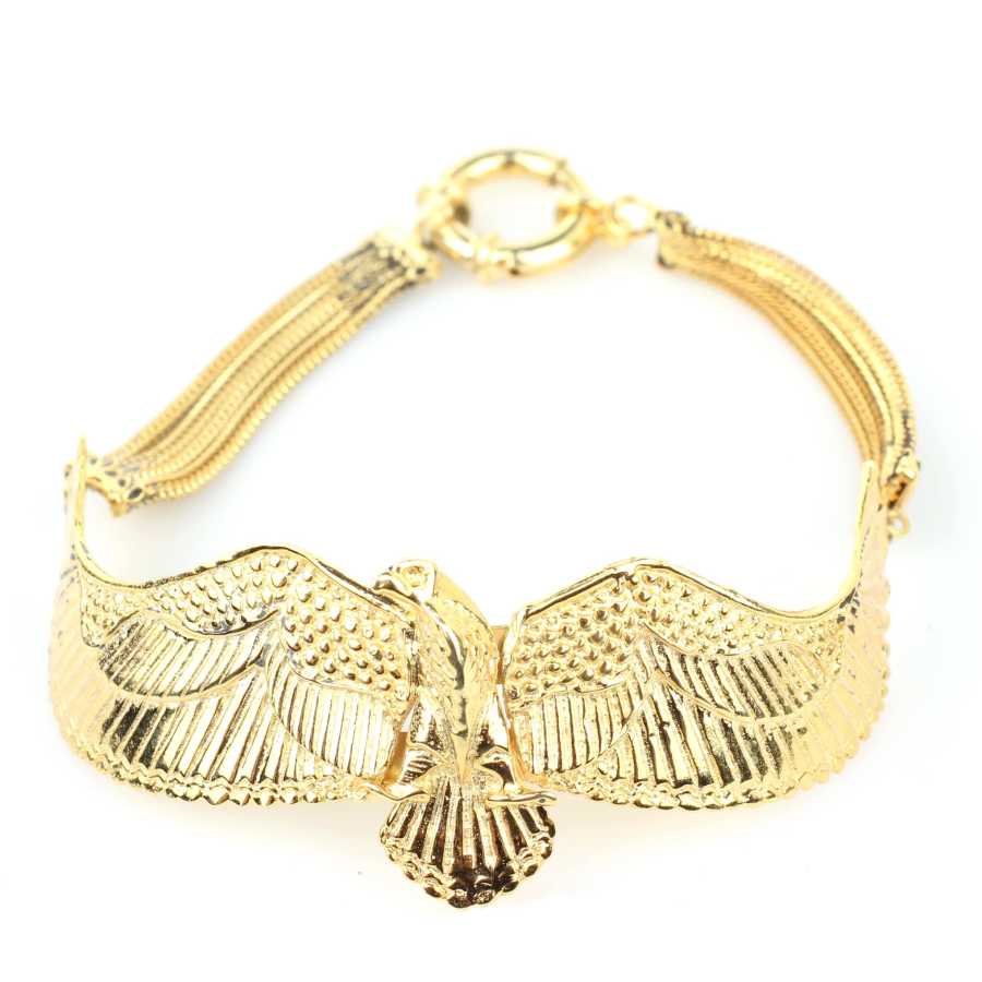 925 Ayar Gümüştür. 20 cm boyunda kartal modeli altın sarısı kaplamalı bileklik Gramı: 20,4 gr