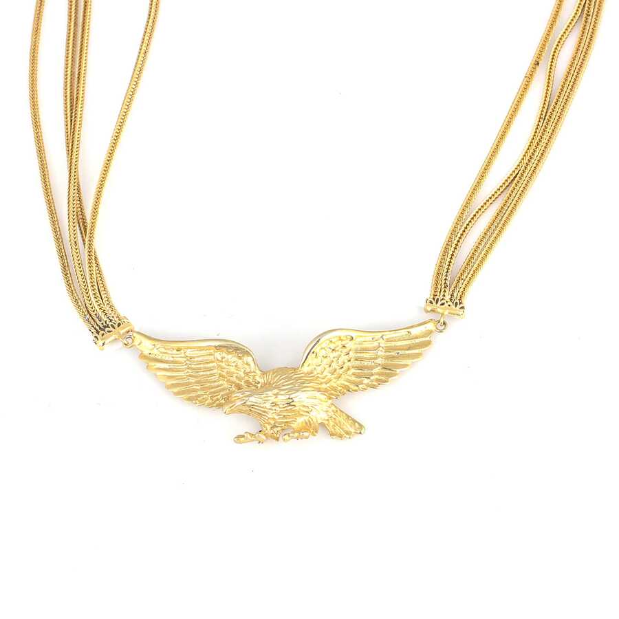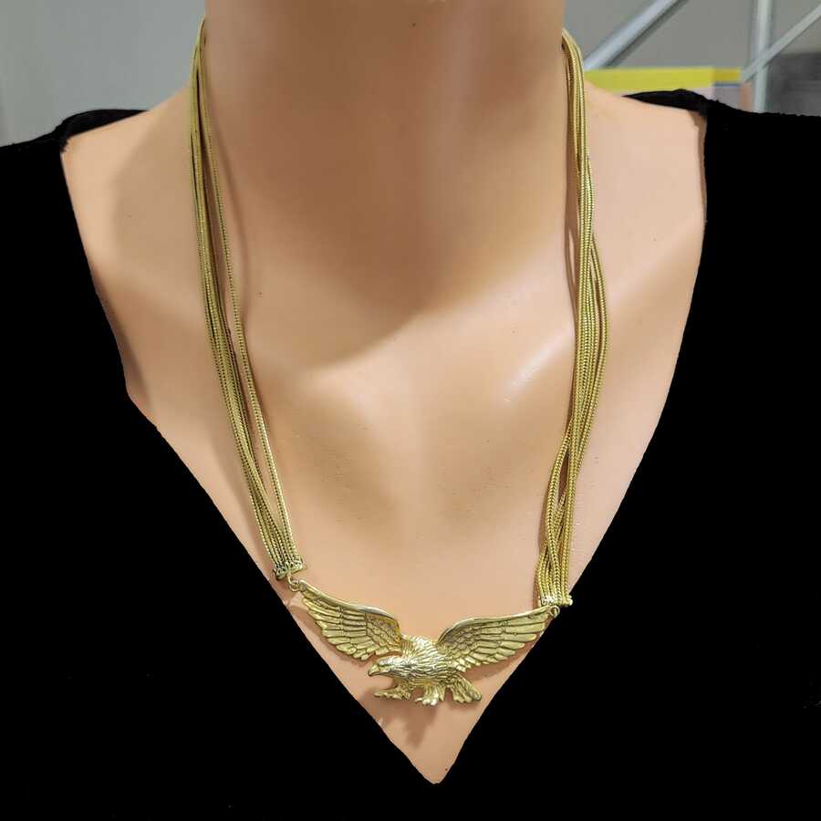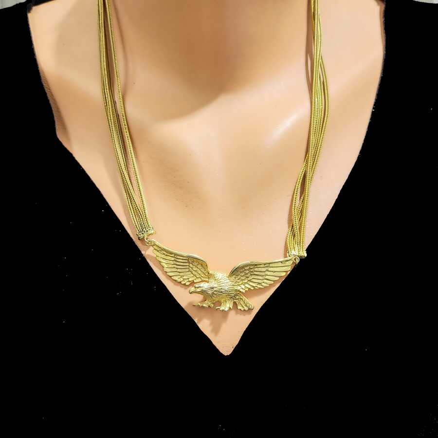 925 Ayar Gümüştür. 52 cm boyunda kartal kolye 4 sıra zincirli kolları ile bütünleşmiştir Gramı: 29,83