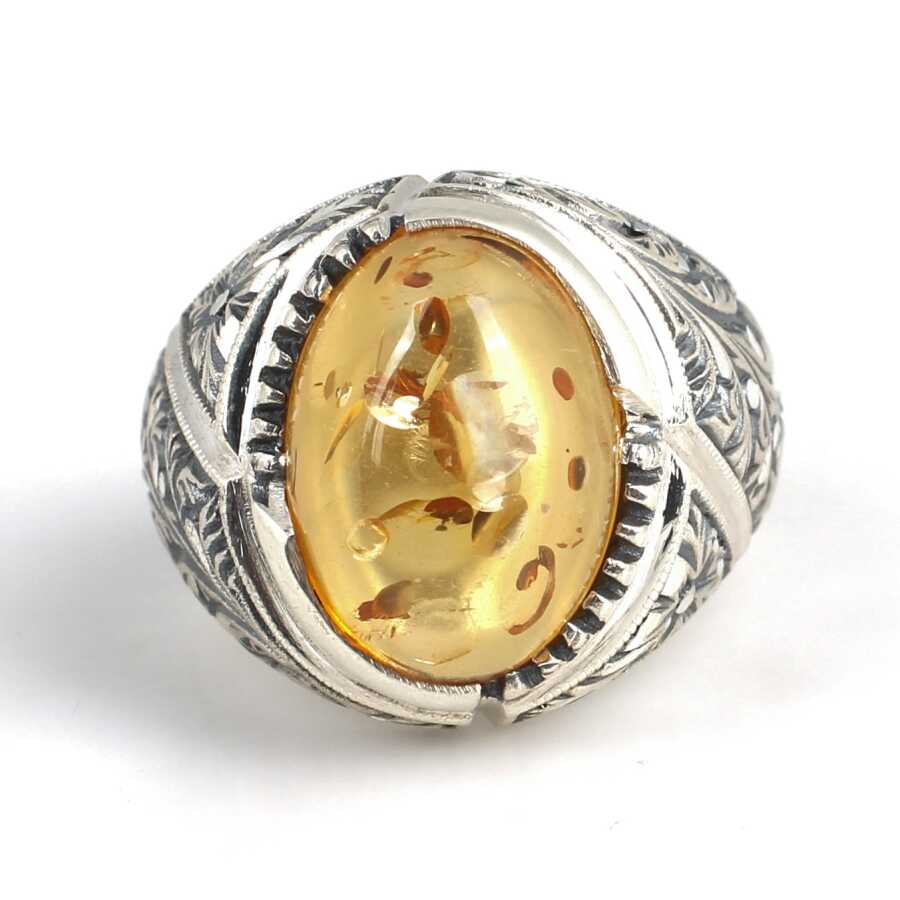 Notify me when its in stock Yüzük 925 ayar gümüşten üretilmiştir. Yüzüğün üzerinde el kalemi atılarak tasarlanmıştır. Yüzüğün üst kısmı 1,9 cm'ye 1,5 cm boyutlarındadır. Resimdeki yüzük 25 ölçüdür, ancak tüm ölçüler özel olarak yapılabilmektedir. Yüzük sıkma kehribar taşlıdır. Ağırlığı 21,08 gramdır.