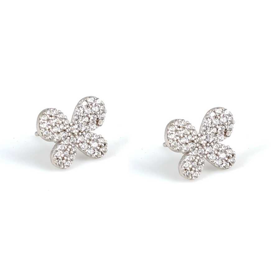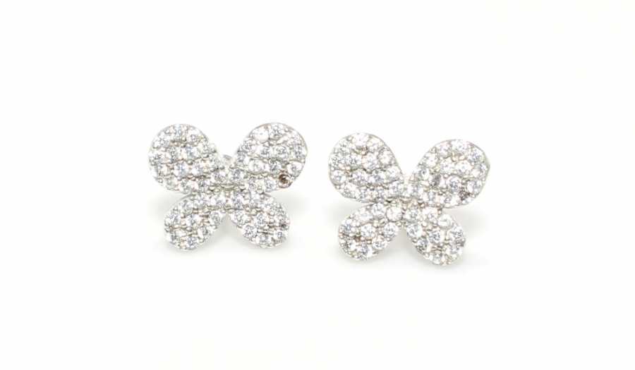 925 Ayar Gümüş Kelebek Küpe, Beyaz - Beyaz Taş
