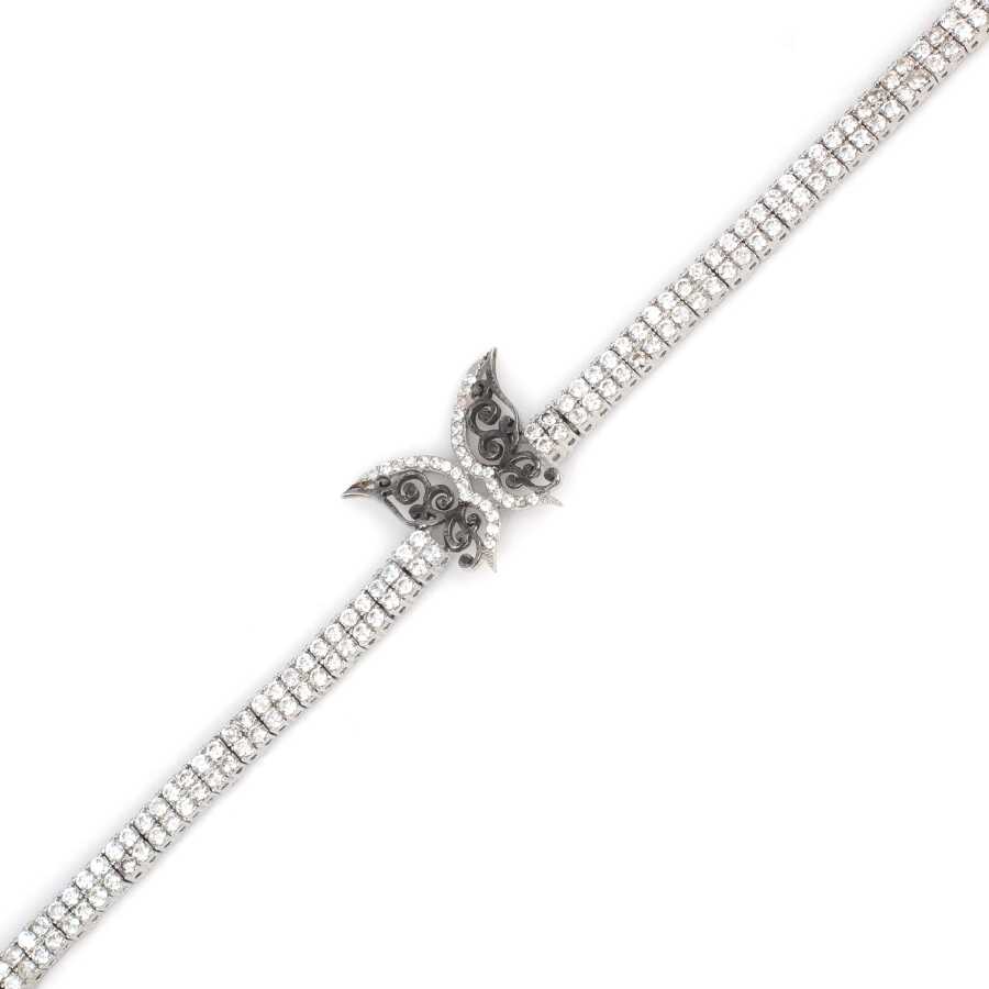 925 Ayar Gümüş Kelebek Modeli Su Yolu Bileklik, Beyaz Siyah - Beyaz Taş
