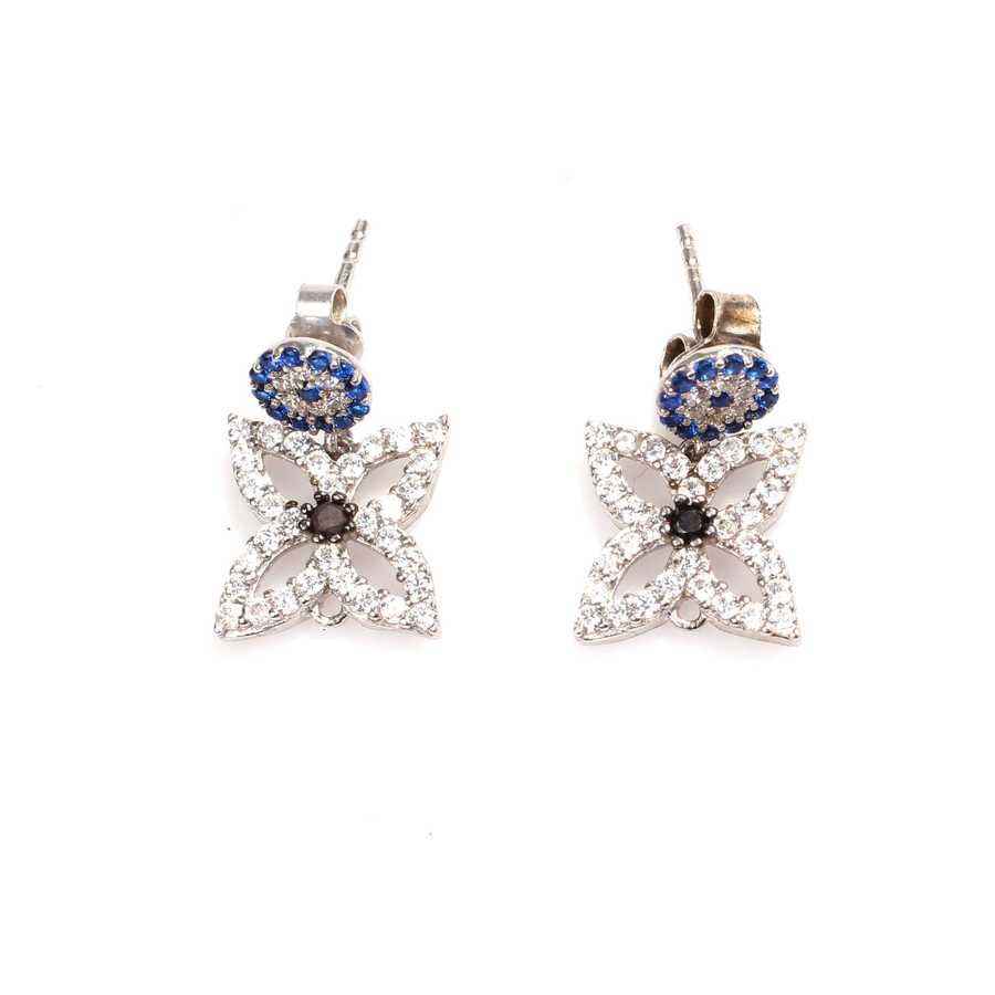 925 Ayar Gümüş Kelebek & Nazar Boncuk Küpe