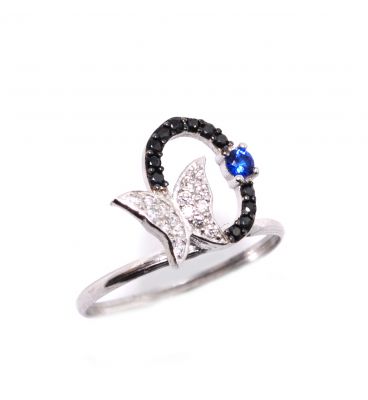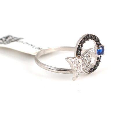 Yüzük 925 ayar gümüşten üretilmiştir. Çember kenarında kelebek şeklindeki yüzük 14 ölçüdür. Tüm ölçüler yapılabilmektedir. Yüzük siyah, beyaz ve mavi zirkon taşlara sahiptir. Çember kenarında kelebek figürlü parça 1,4 cm'ye 1,2 cm boyutlarındadır. Ağırlığı 1,29 gramdır.