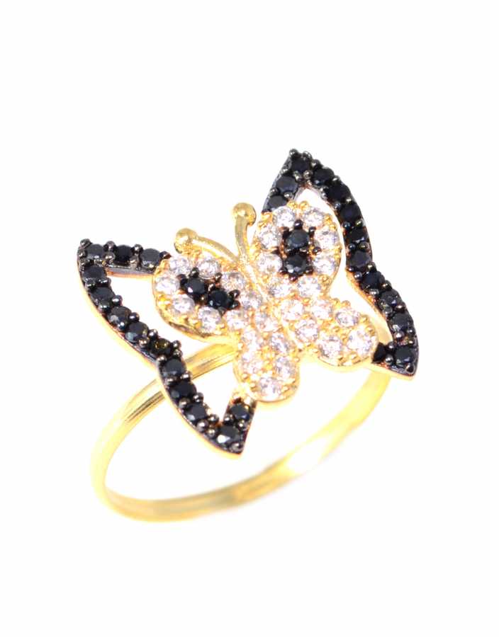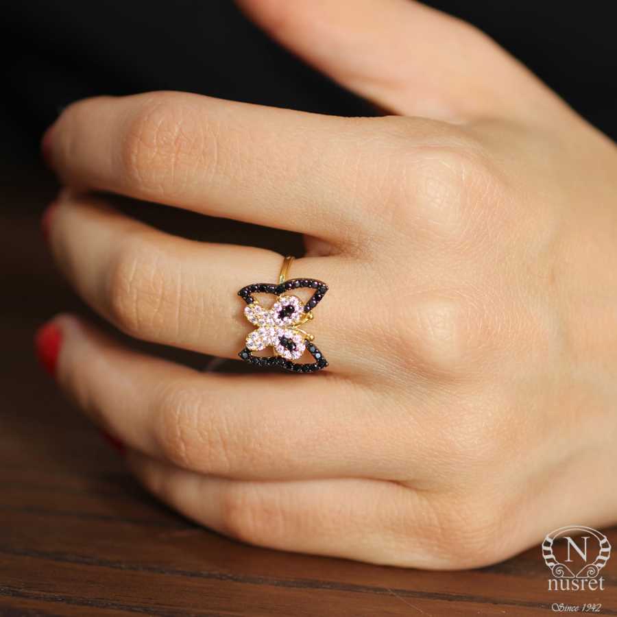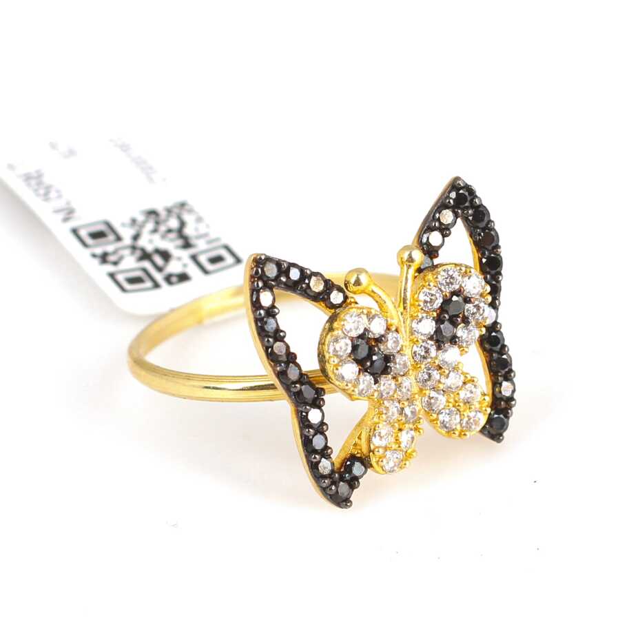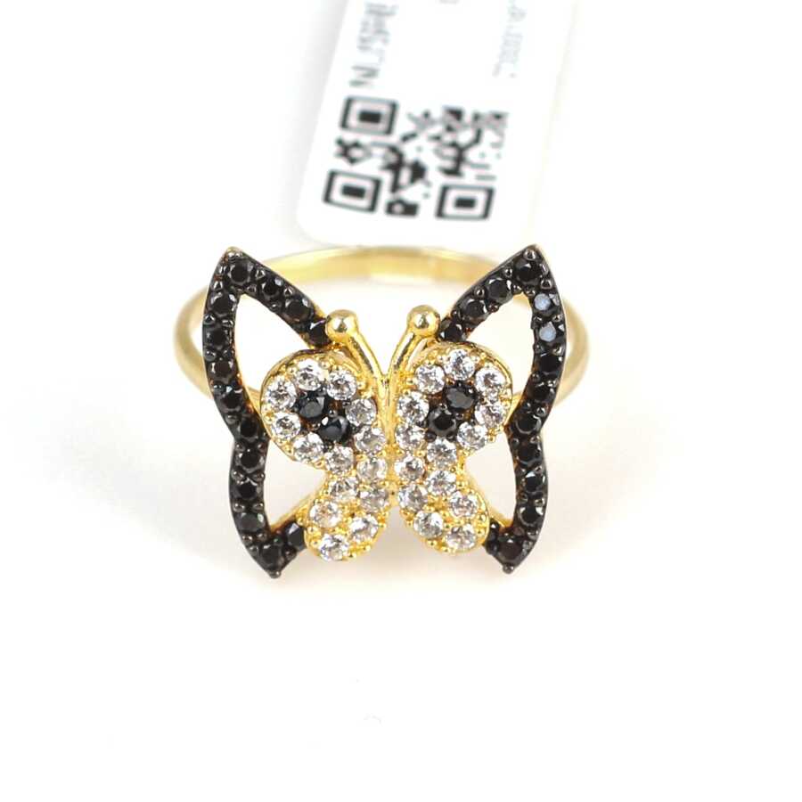 Yüzük 925 ayar gümüşten üretilmiştir. Kelebek içinde kelebek şeklindeki yüzük 13 ölçüdür. Tüm ölçüler yapılabilmektedir. Yüzük siyah ve beyaz zirkon taşlara sahiptir. Ağırlığı 1,91 gramdır.