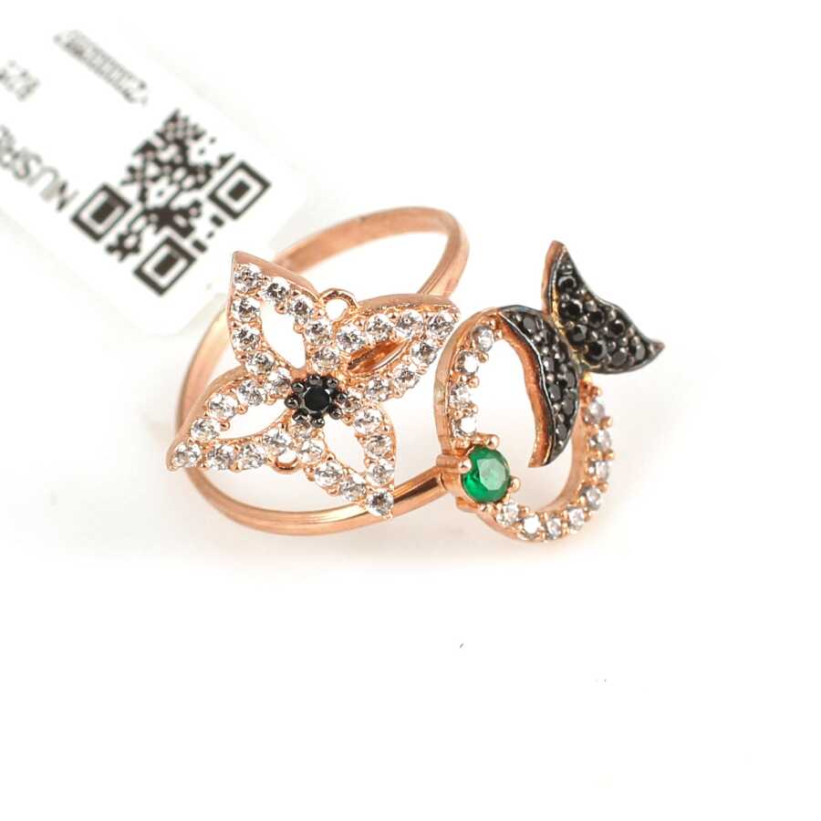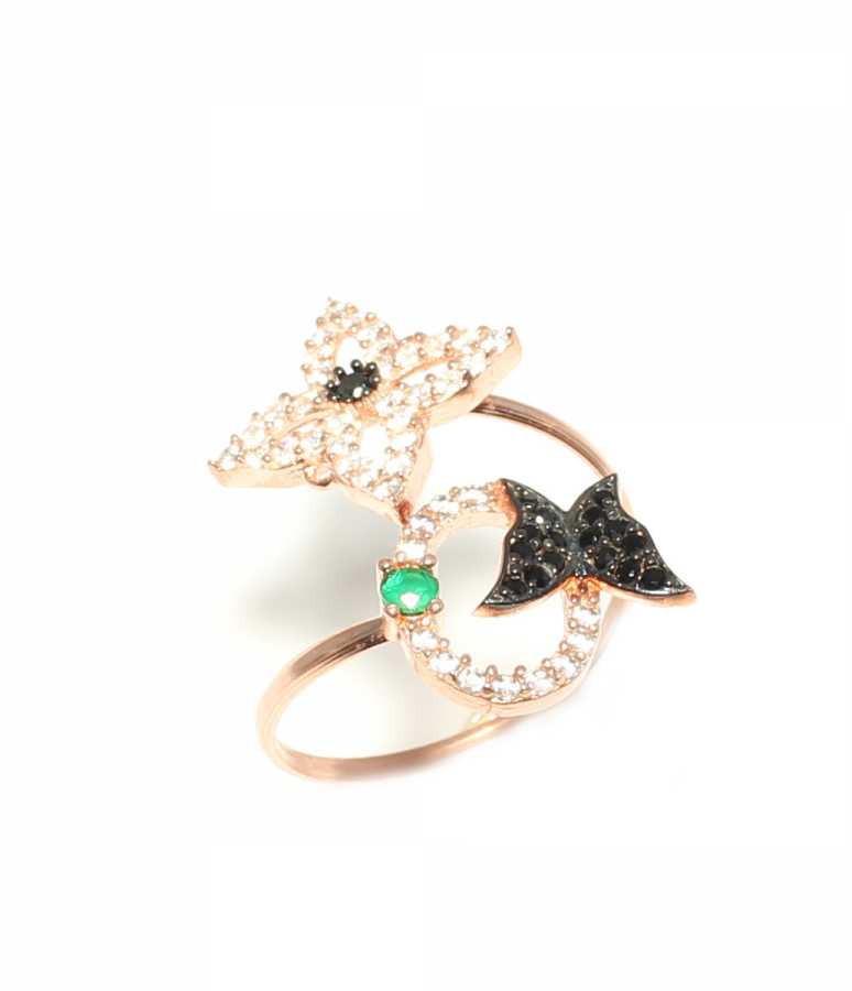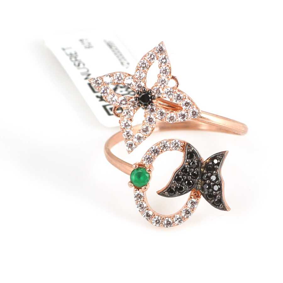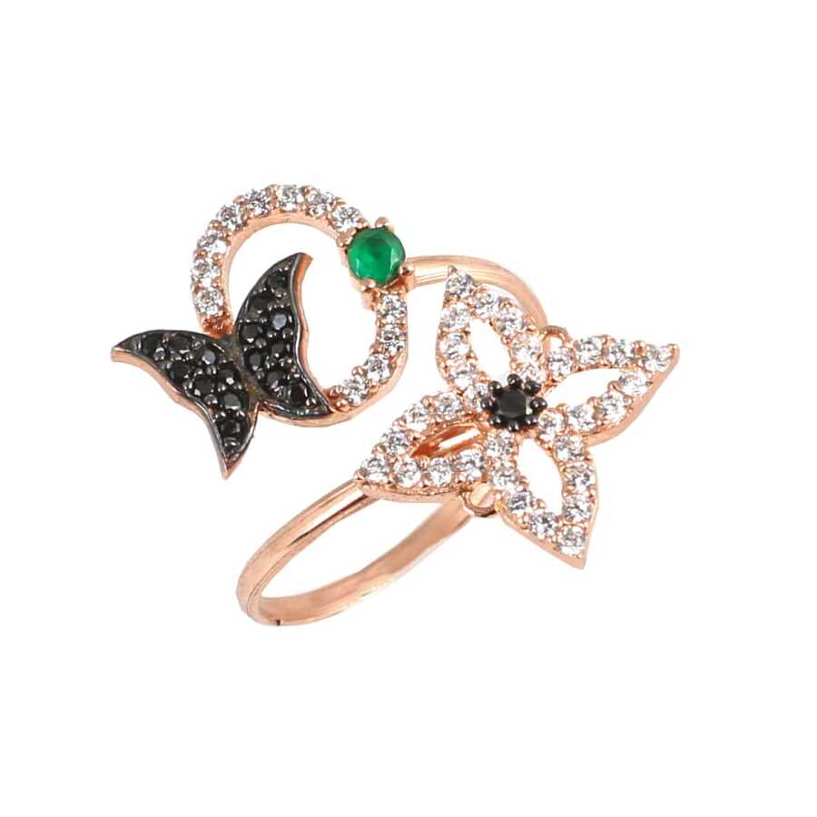 Yüzük 925 ayar gümüşten üretilmiştir. Çember kenarında kelebek ve dörtgen yıldız şeklindeki yüzük ayarlanabilir ölçüdür. Yüzük siyah, beyaz ve yeşil zirkon taşlara sahiptir. Ağırlığı 2,08 gramdır.