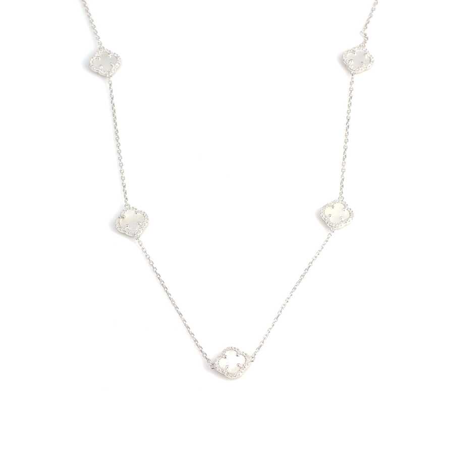 925 Ayar Gümüş Kenarları Zirkon Taşlı 11'Li Yonca Model Sedef Taşlı Kolye