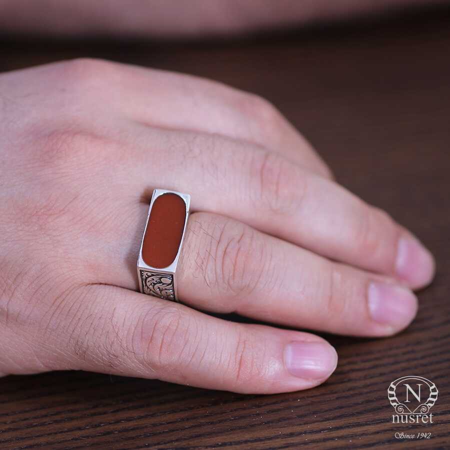 Yüzük 925 ayar gümüşten üretilmiştir. Gümüş yüzüğün üst kısmı kırmızı renk mine yapılmıştır. Yüzüğün üst kısmı 0,9 cm'ye 2,1 cm boyutlarındadır. Resimdeki yüzük 25 ölçüdür, ancak tüm ölçüler yapılabilmektedir. Yüzük taşsızdır. Ağırlığı 11,12 gramdır.