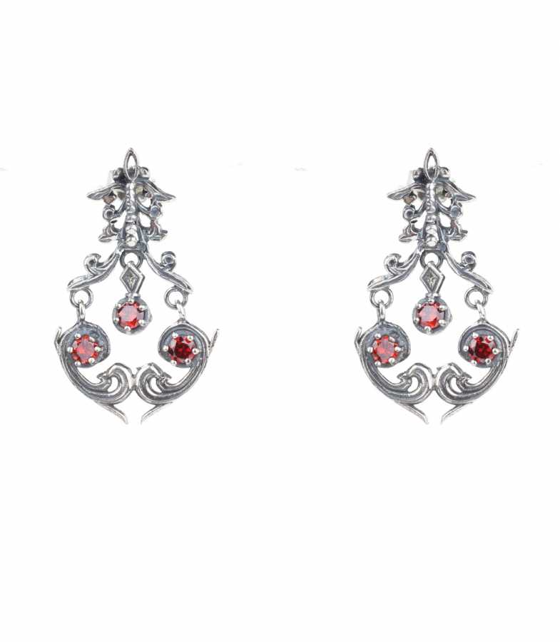 925 Ayar Gümüş Kırmızı Zirkon Taşlı Sallantılı Antik Küpe