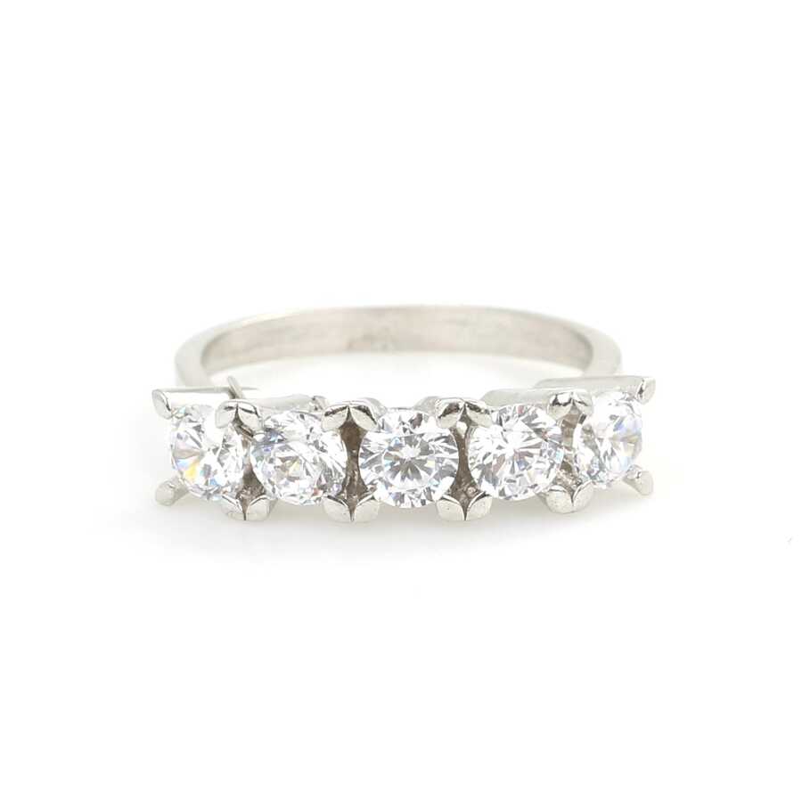 Gümüş yüzük 925 ayar gümüşten yapılmıştır. Klasik beştaş şeklinde gümüş yüzük 1,15 crt görünümündedir. Yüzük zirkon taşlıdır. Resimdeki yüzük 12 ölçüdür, ancak tüm ölçüler özel olarak yapılabilmektedir. Ağırlığı 2,57 gramdır.