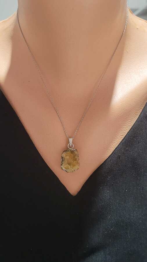 Kolye ucu 925 ayar gümüşten imal edilmiştir. Şekilsiz çerçeveli sitrin kolye ucu 1,5 cm'ye 2,5 cm boyutlarındadır. Zincir dahil değildir. Kolye ucu kök sitrin taşlıdır. Kolye ucu 5,15 gram ağırlığındadır.