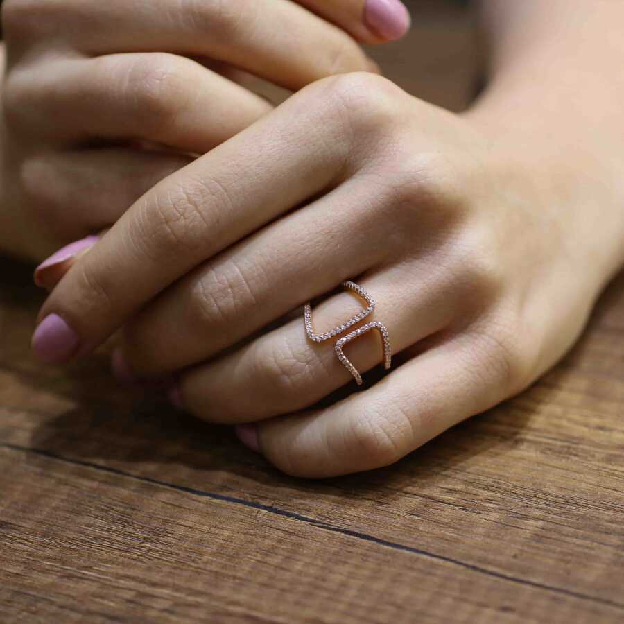 925 Ayar Gümüş Köşeli Çift D Tasarım Yüzük
