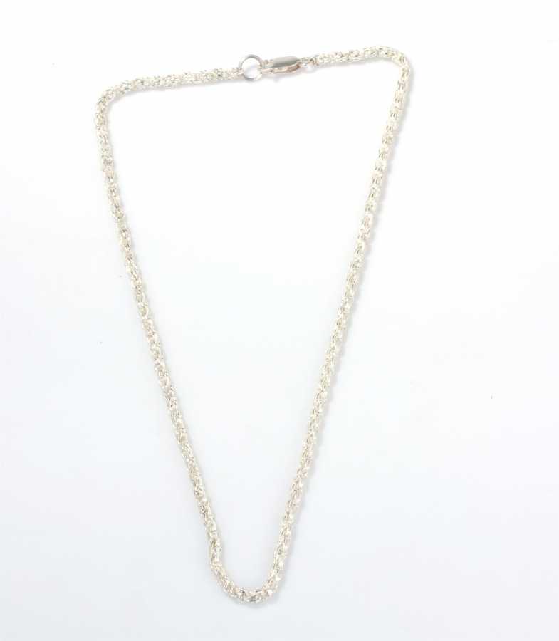 Gümüş kolye 925 ayar gümüşten yapılmıştır. Köstek zincir kolye 44 cm uzunluğundadır. Kolye taşsızdır. Farklı zincir boyları için bizimle iletişime geçebilirsiniz. Ağırlığı 26,45 gramdır.