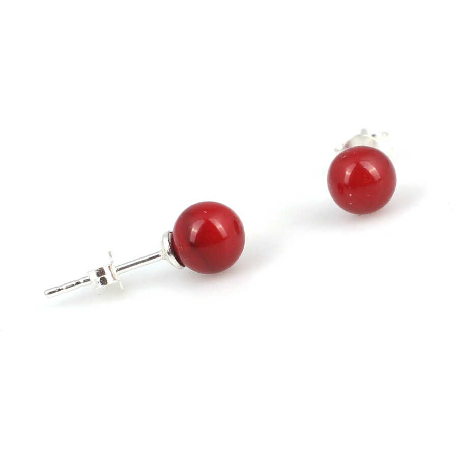 925 Ayar Gümüş Koyu Mercan Taşlı Minik Top Küpe