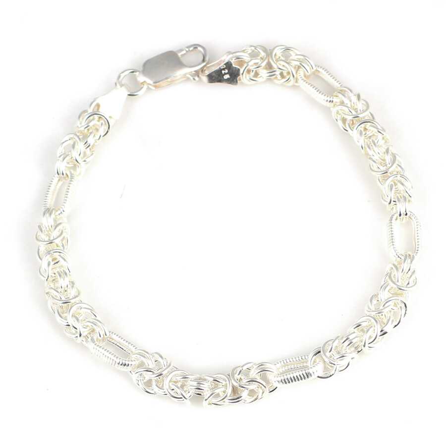 Gelince Haber Ver Bileklik 925 ayar gümüşten imal edilmiştir. Kral şarnel bileklik 20,5 cm uzunluğundadır. Bileklik 0,5 cm genişliğinde ve 0,5 cm kalınlığındadır. Gümüş desenli şarnel parça 0,6 cm'ye 1,0 cm boyutlarındadır. Kral zincir aralarında 5 adet desenli şarnel vardır. Bileklik taşsızdır. Zincir bileklik gümüş renk rodajlıdır. Ağırlığı 16,88 gramdır.