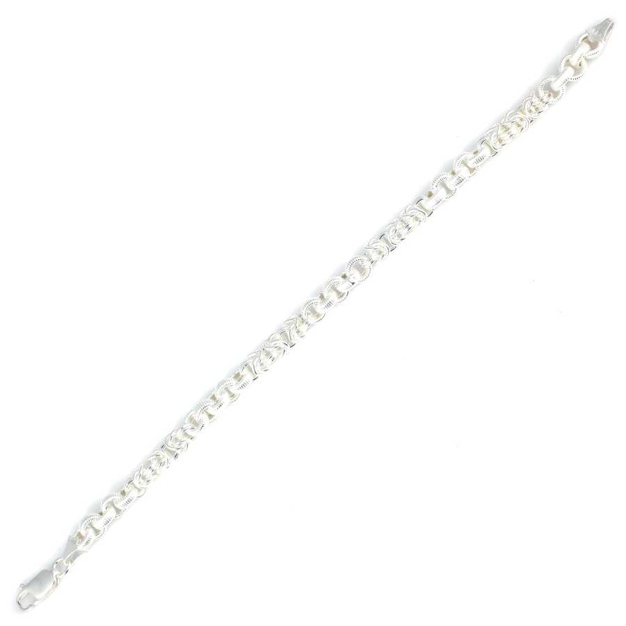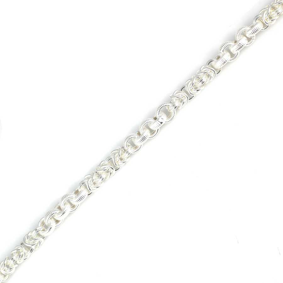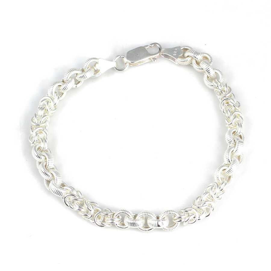 Gelince Haber Ver Bileklik 925 ayar gümüşten imal edilmiştir. Kral şarnel bileklik 20,5 cm uzunluğundadır. Bileklik 0,5 cm genişliğinde ve 0,5 cm kalınlığındadır. Gümüş desenli halka 0,7 cm boyutlarındadır. Kral zincir aralarında desenli yuvarlak parçalar vardır. Bileklik taşsızdır. Zincir bileklik gümüş renk rodajlıdır. Ağırlığı 18,15 gramdır.