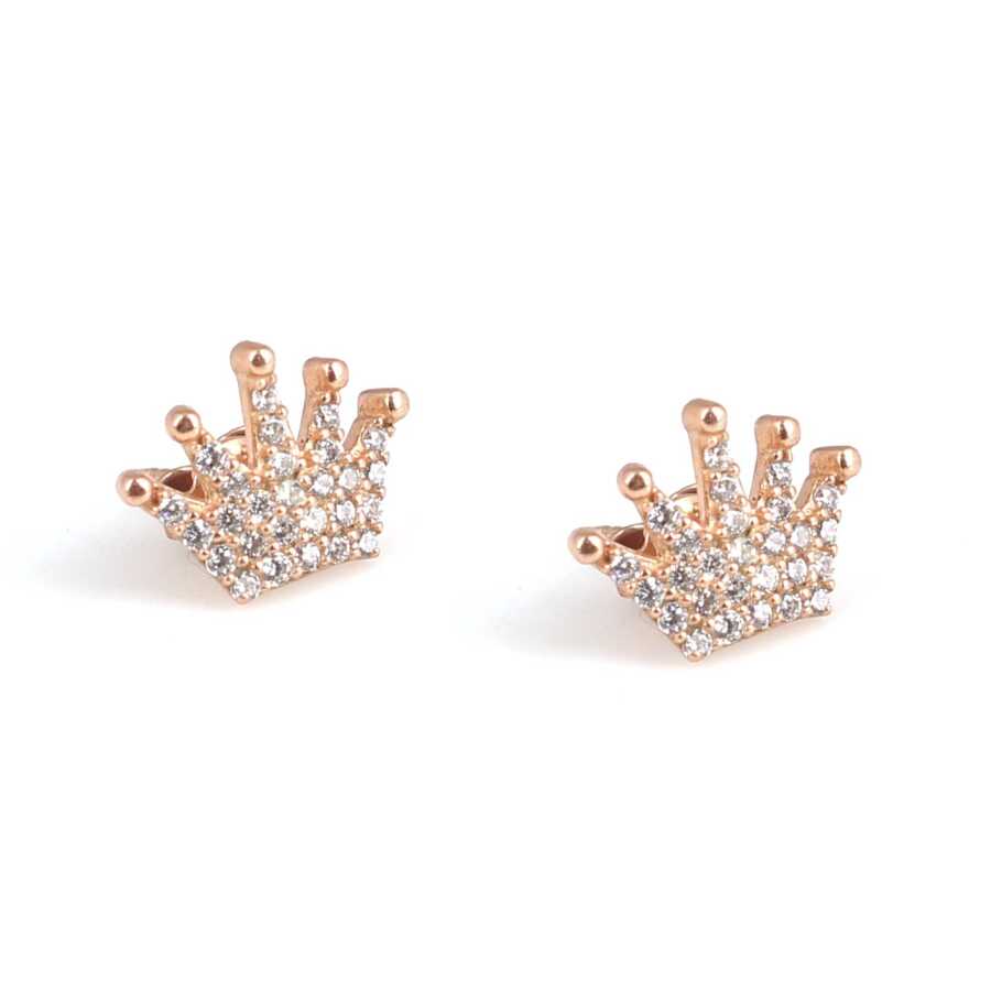 925 Rose Silver Crown Model Stud Earrings, White Zircon