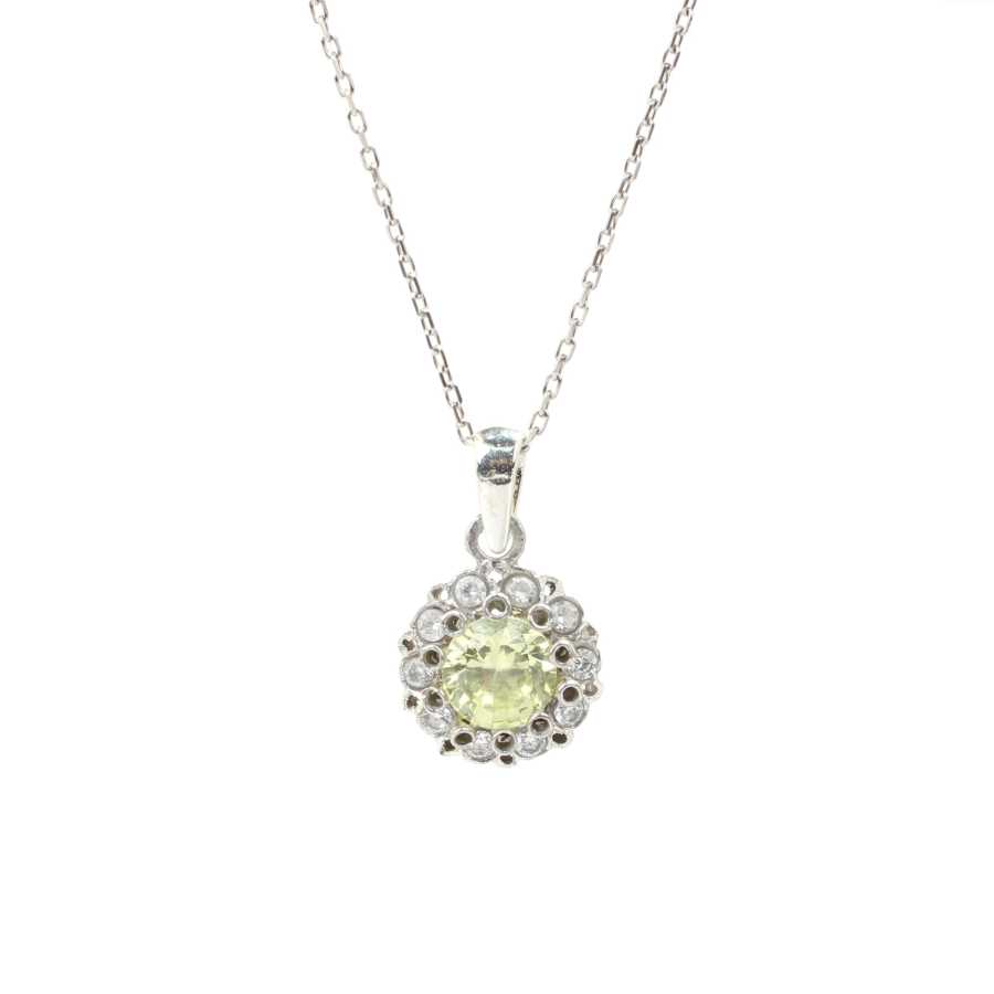 925 Ayar Gümüş Krizantem Çiçeği Tasarım Peridot Taşlı Kolye