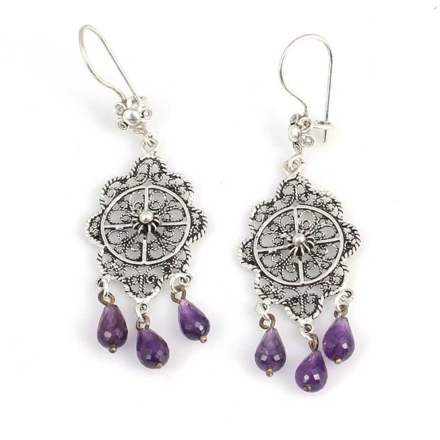 925 Ayar Gümüş Kubbe Model Ametist Taşlı Telkari Küpe