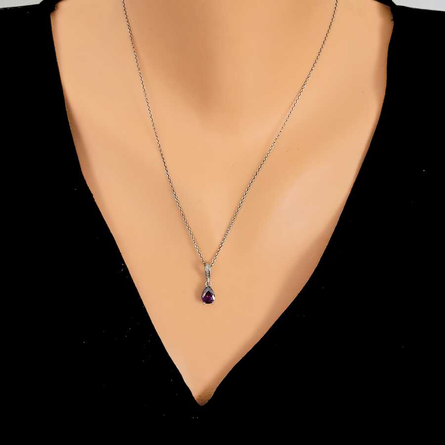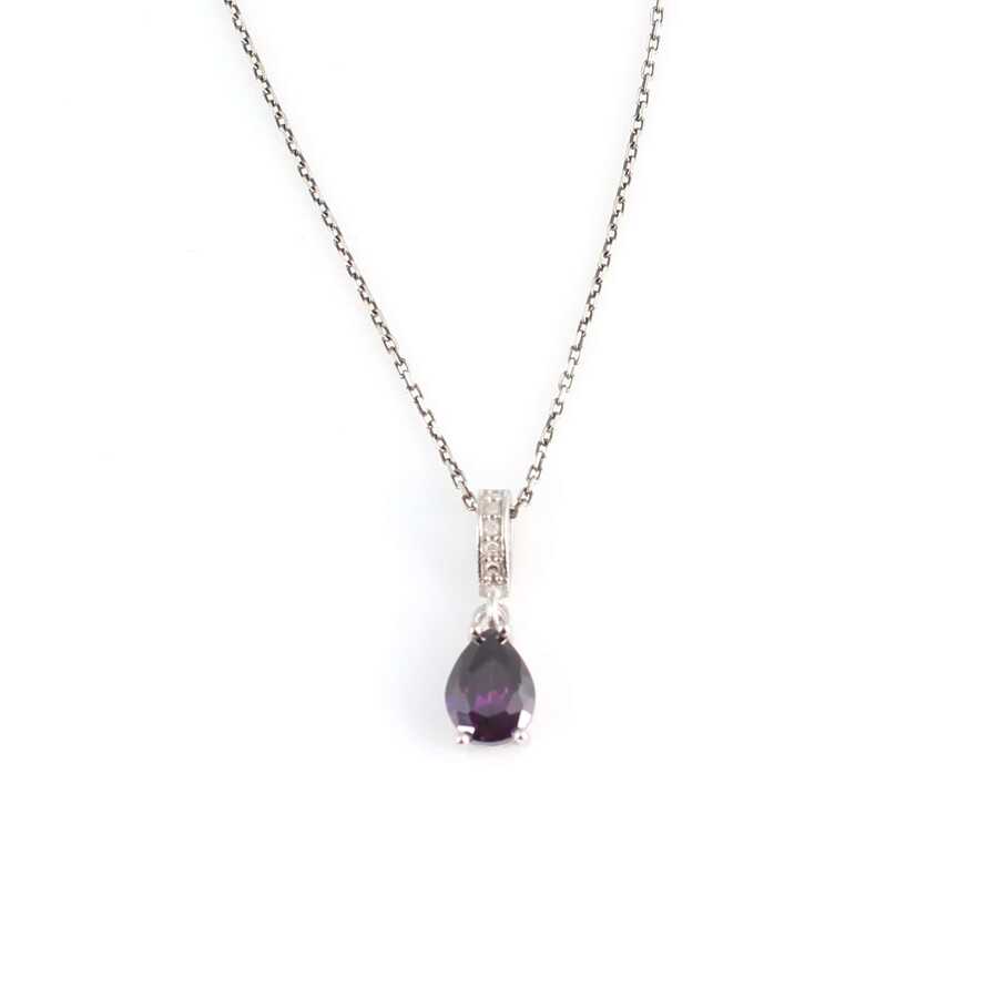 925 Ayar Gümüş Küçük Damla Ametist Kolye