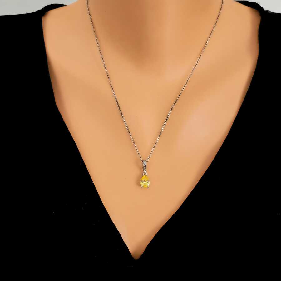 925 Ayar Gümüş Küçük Damla Sitrin Taşlı Kolye