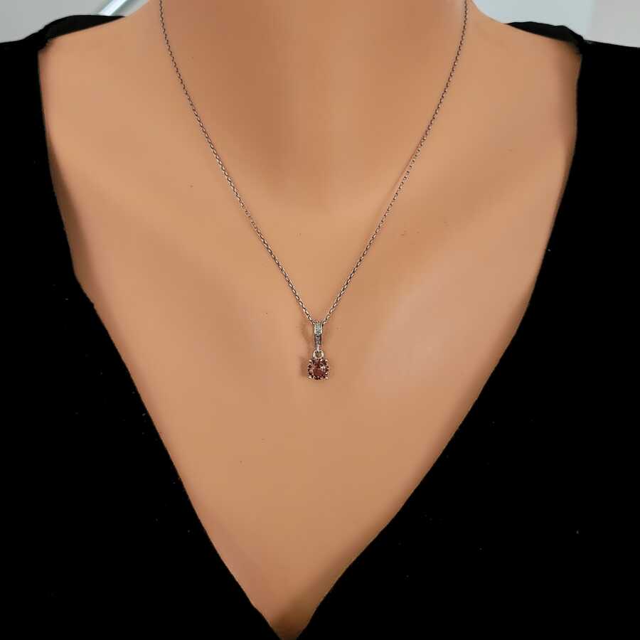925 Ayar Gümüş Küçük Yuvarlak Zultanit Taşlı Kolye