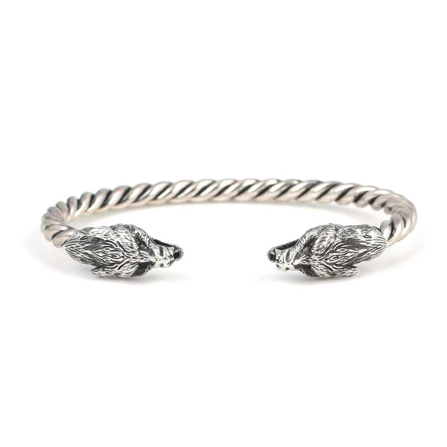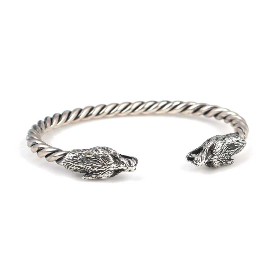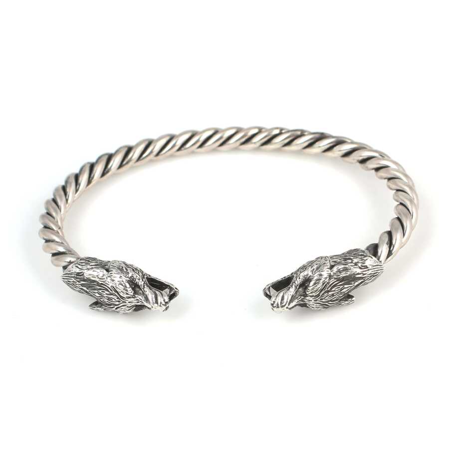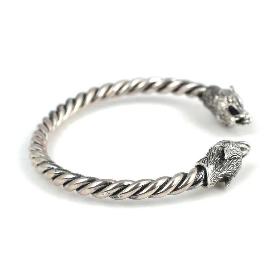 Bilezik 925 ayar gümüşten imal edilmiştir. Kurt başı model 3 tel burgu bilezik 6,6 cm çapındadır. Bileziğin üst kısmı 1 cm genişliğindedir. Bilezik taşsızdır.Ağırlığı 28,57 gramdır.